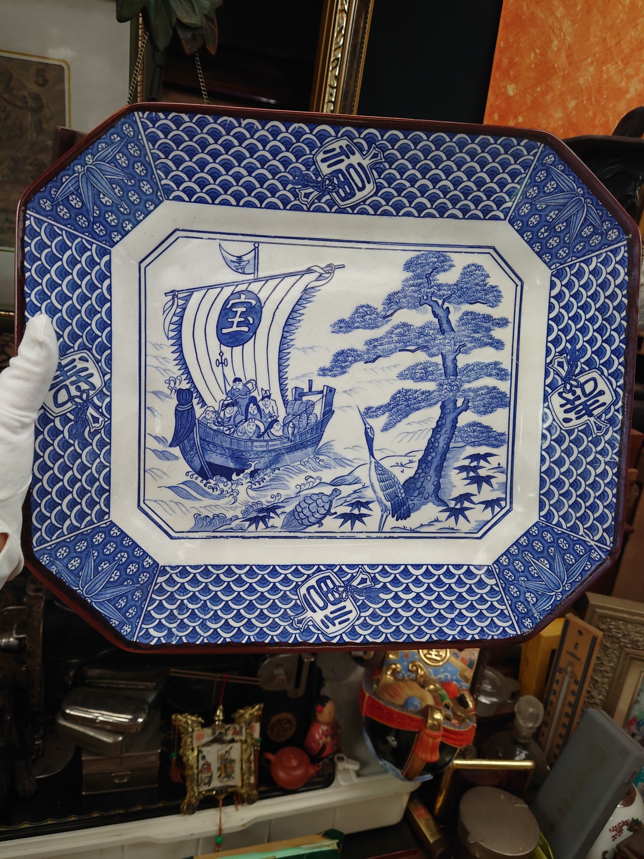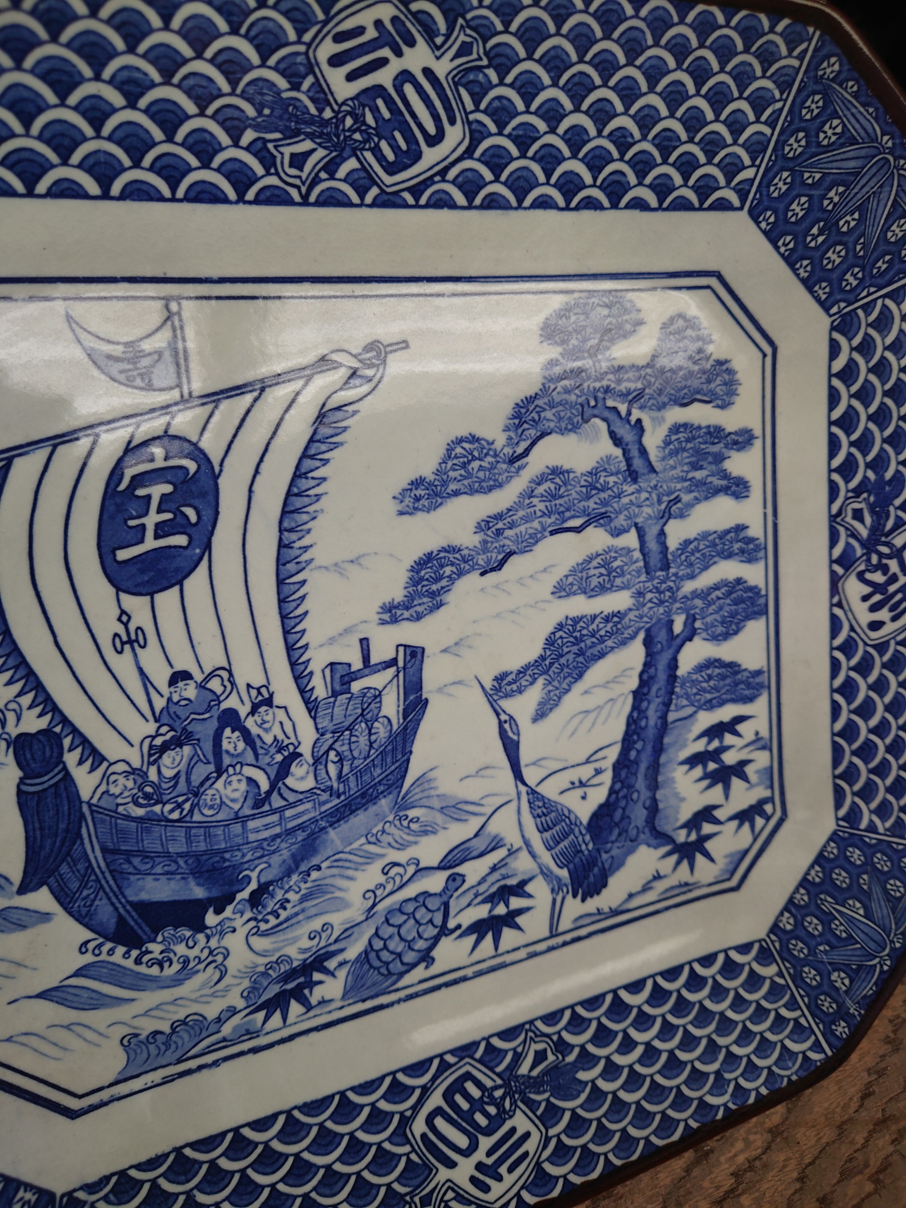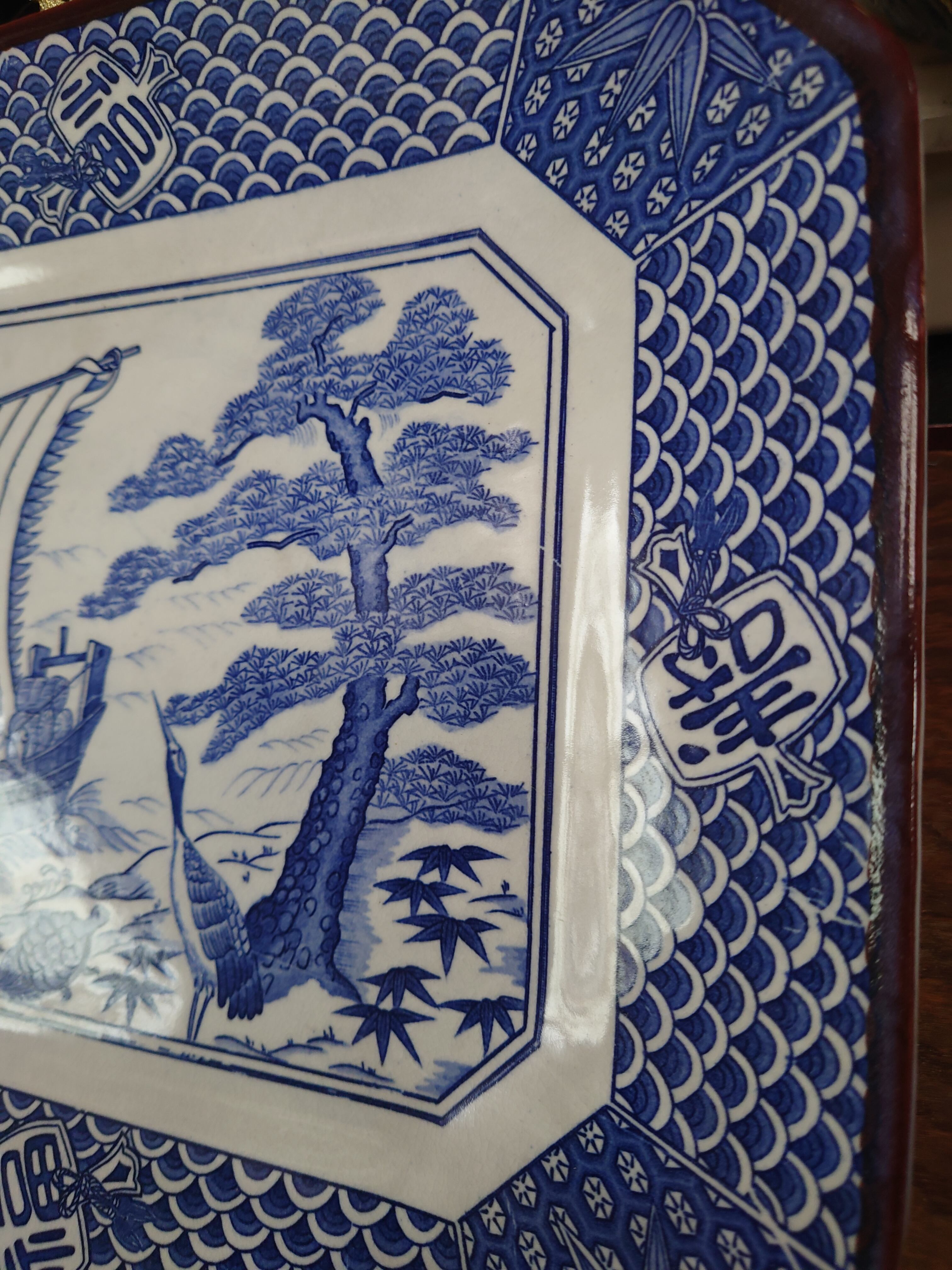 七福神の宝船や鶴亀の描かれた縁起物の角皿