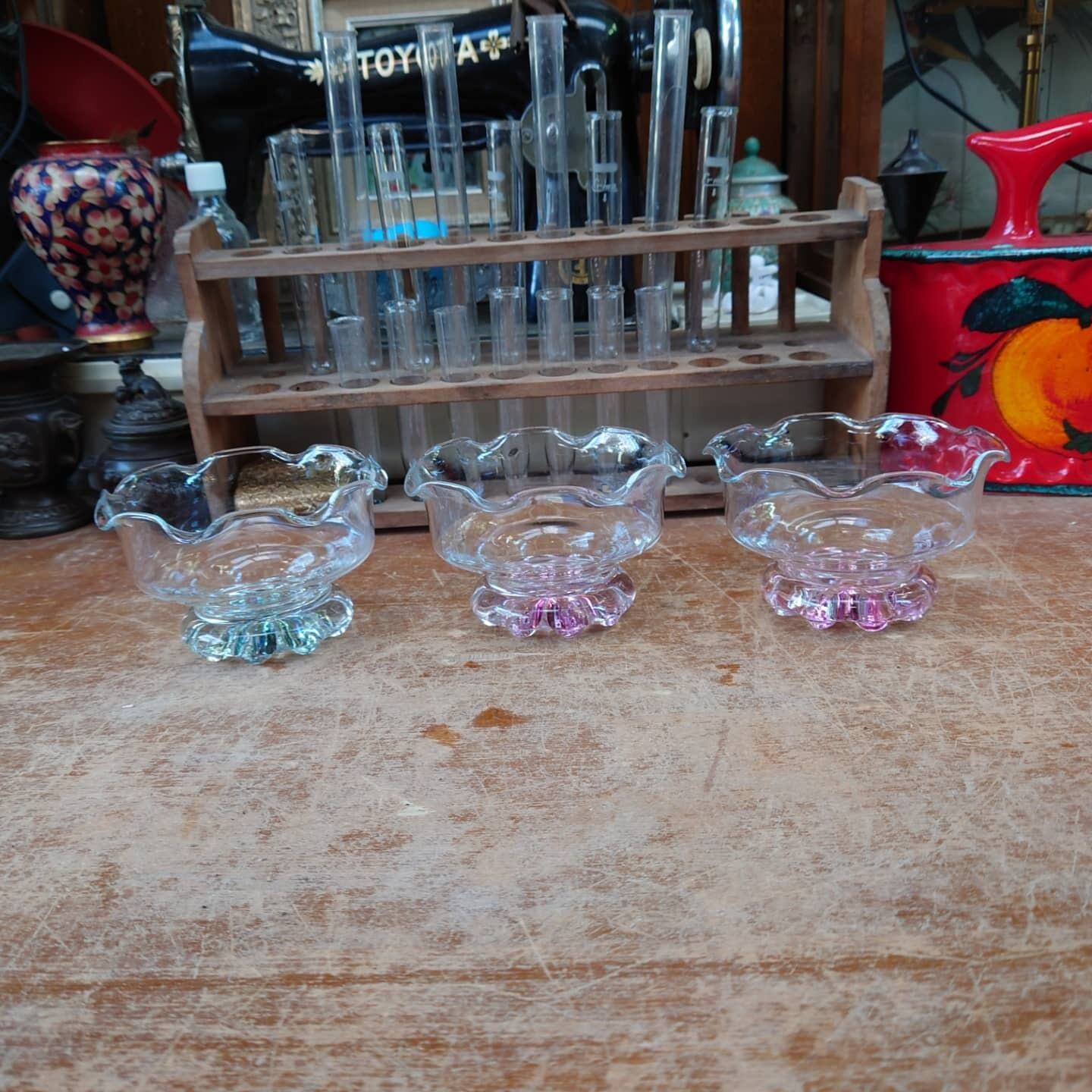 レトロポップなプレスガラスのアイスクリームグラス