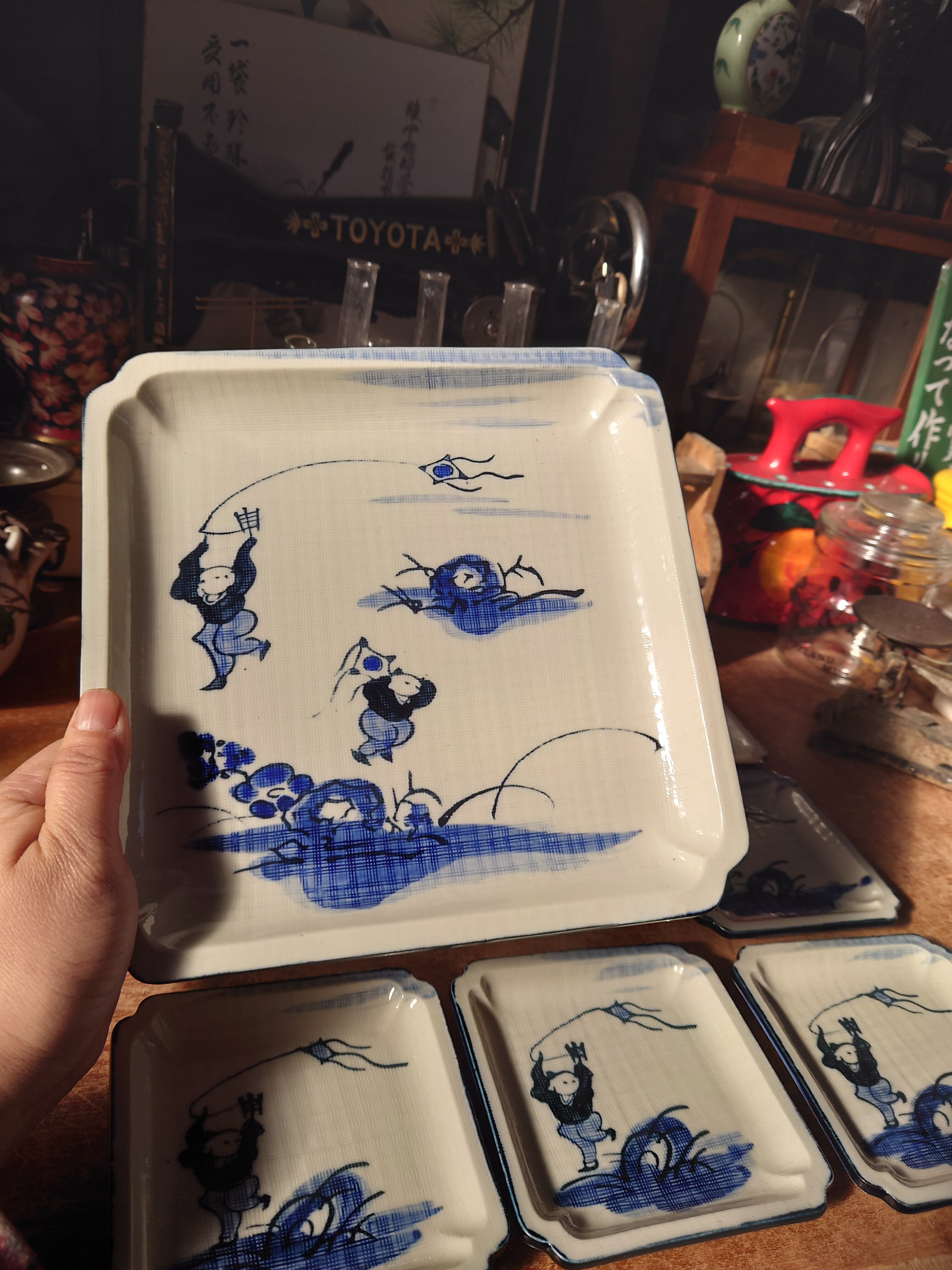 【陶器まつり】唐子 角皿 6枚セット 箱付き