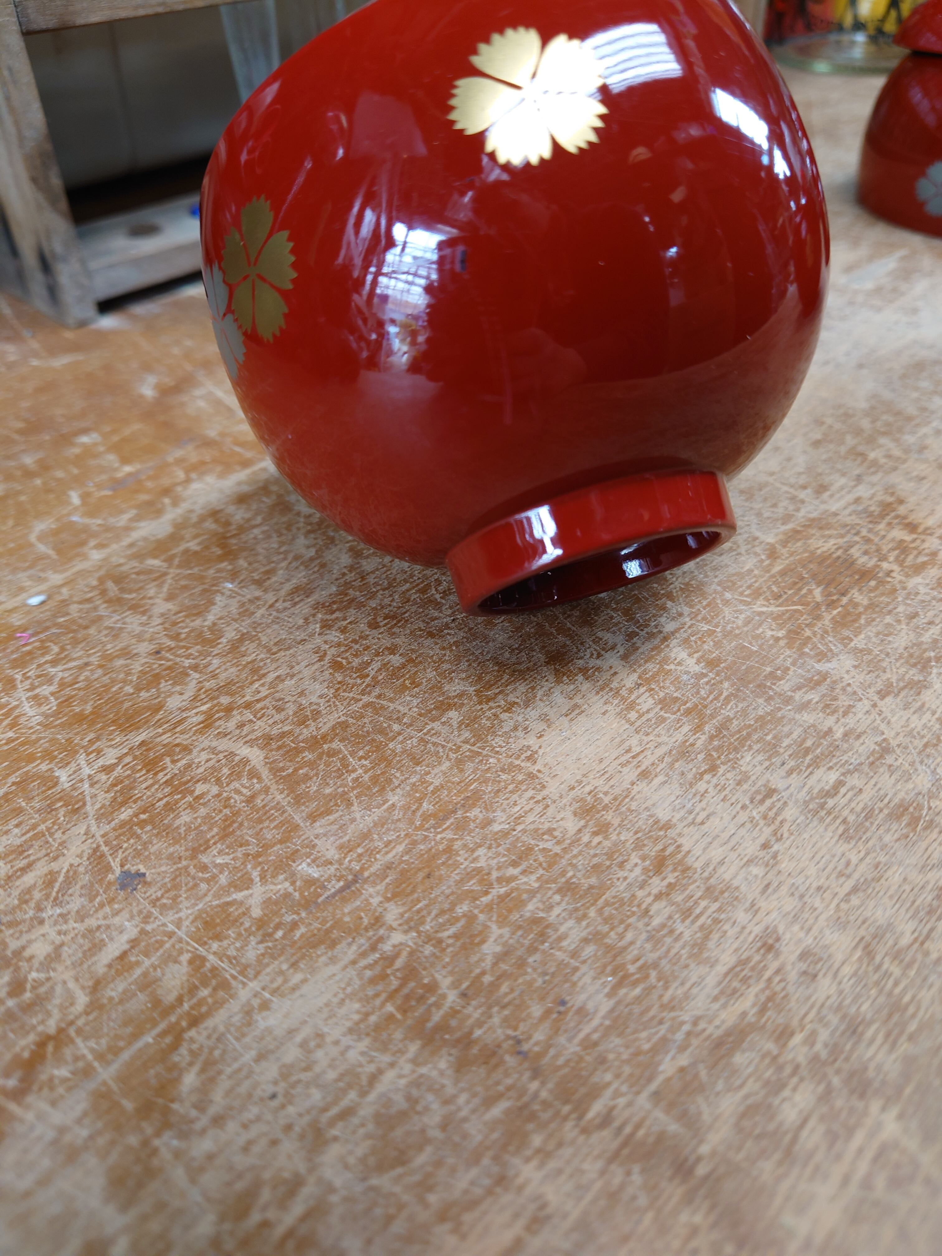HANAE MORI 森英恵 しっきシック 小吸椀揃 赤い蓋付き汁椀 金彩 蝶柄
