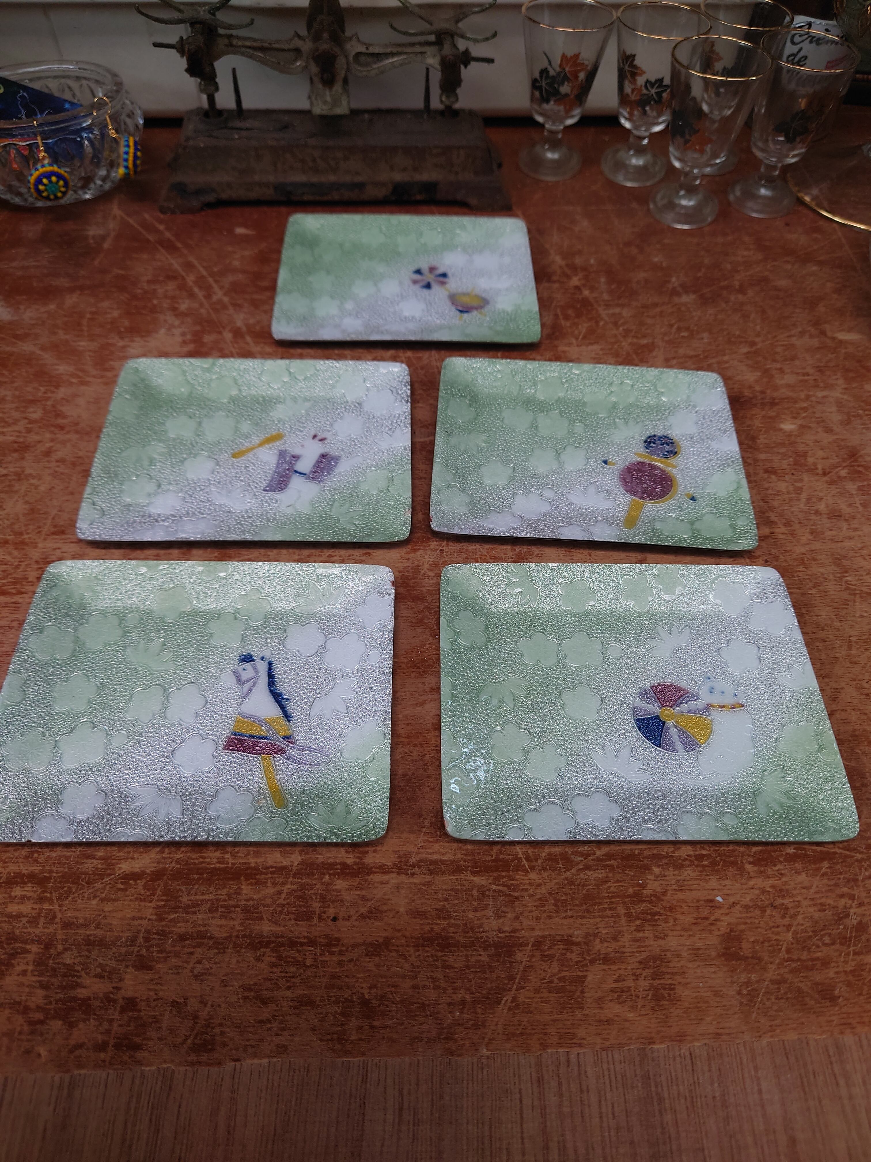 七宝焼きの銘々皿 童子物語 5枚 訳あり キズあり
