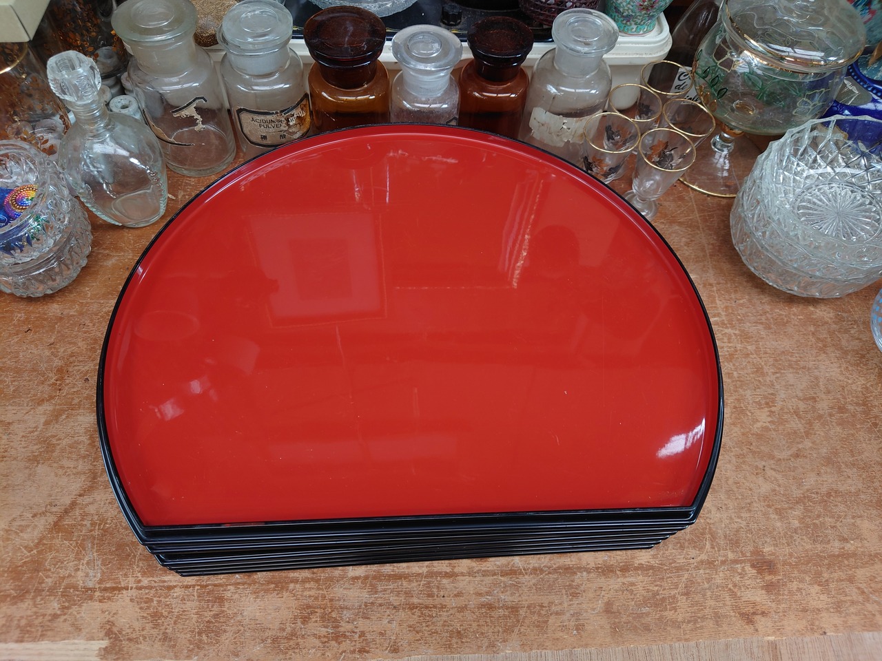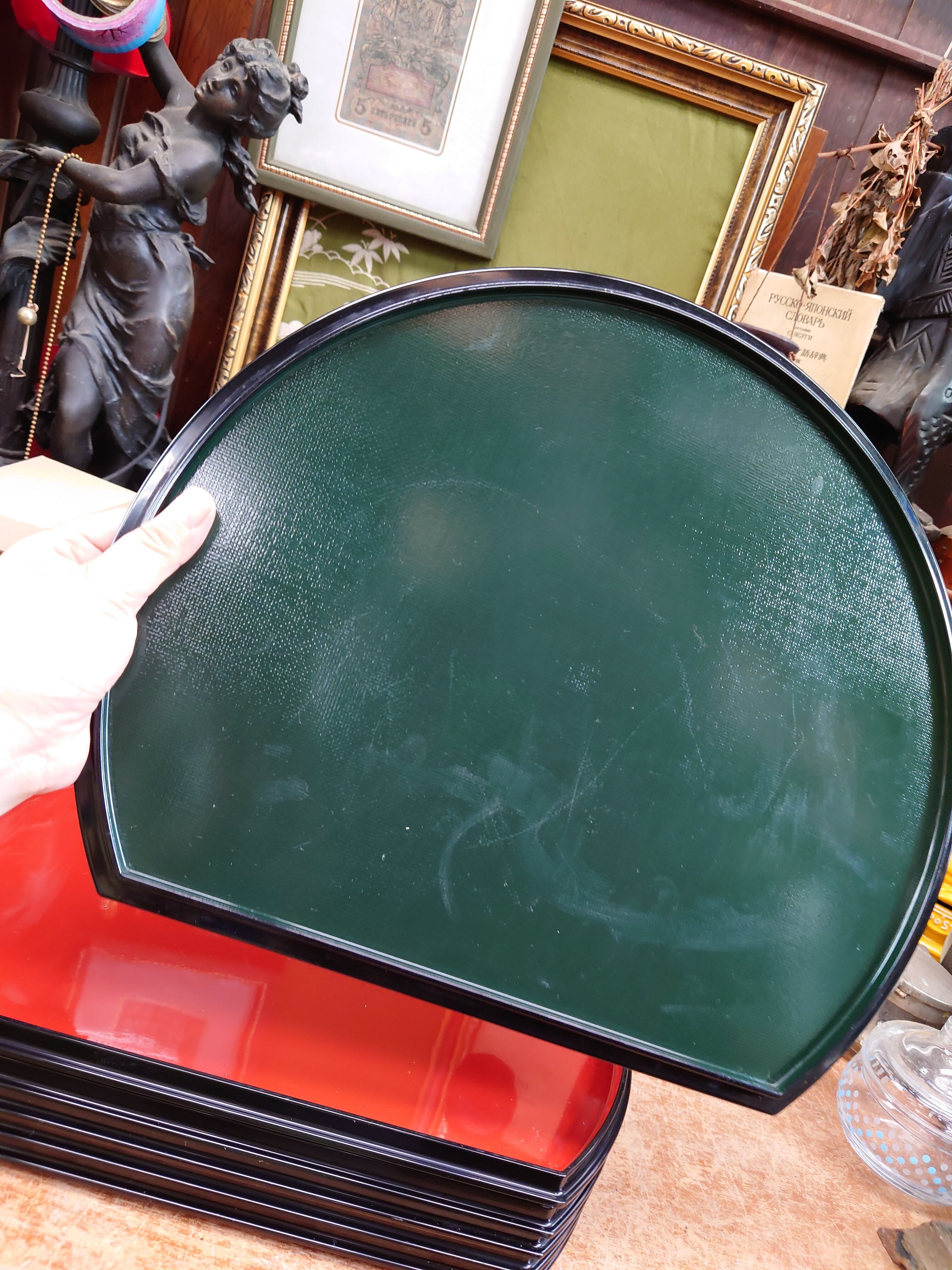 【送料込み】【中古】半円盆 赤×緑 リバーシブル 定食盆 一人盆 6枚セット