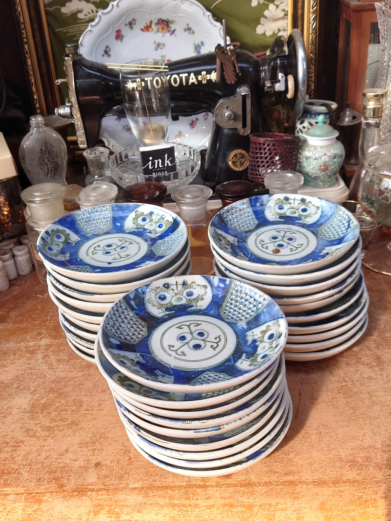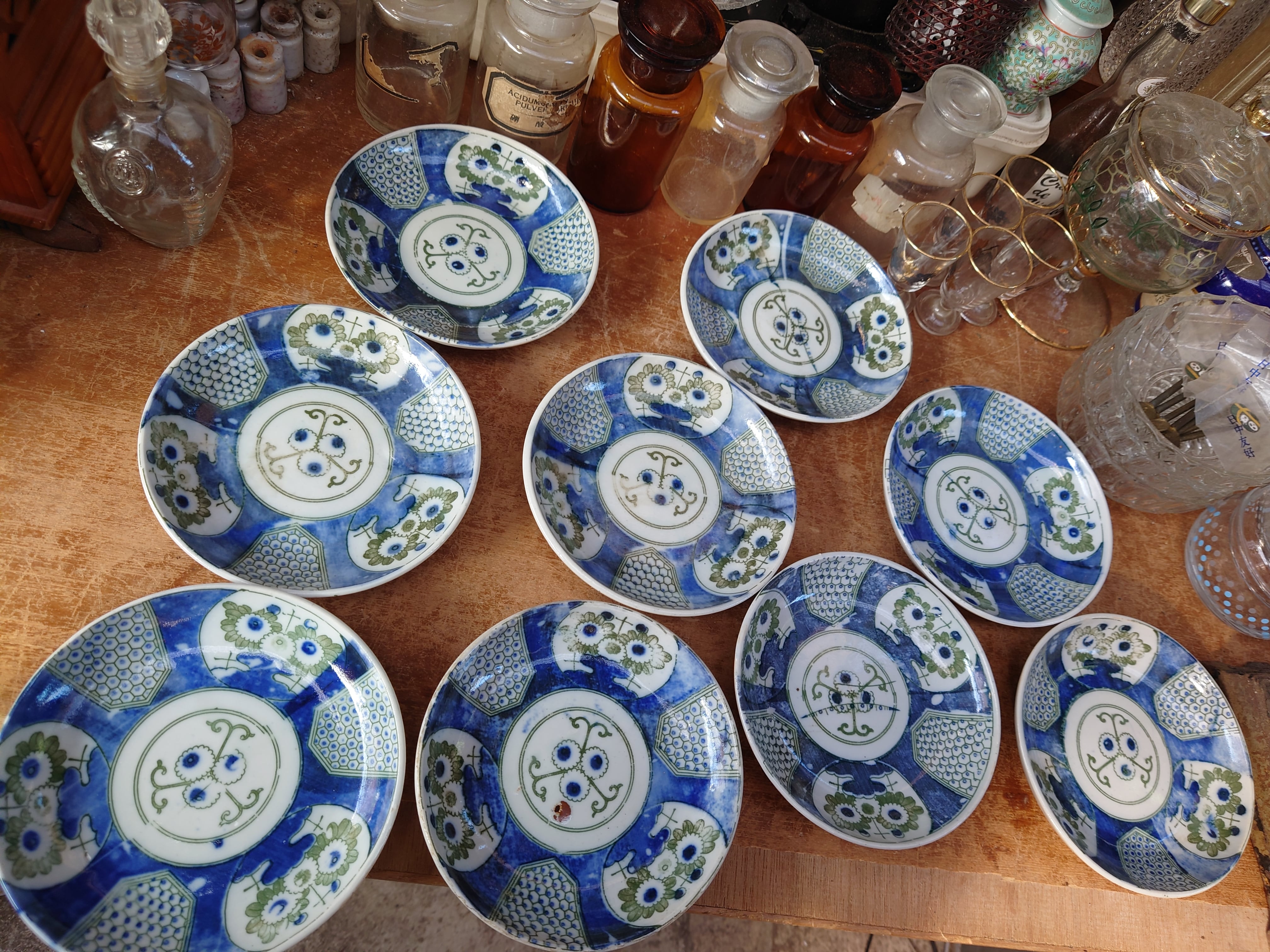 青と緑の印判の揃いの銘々皿 中皿
