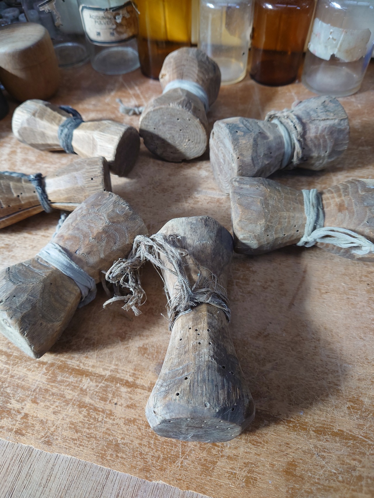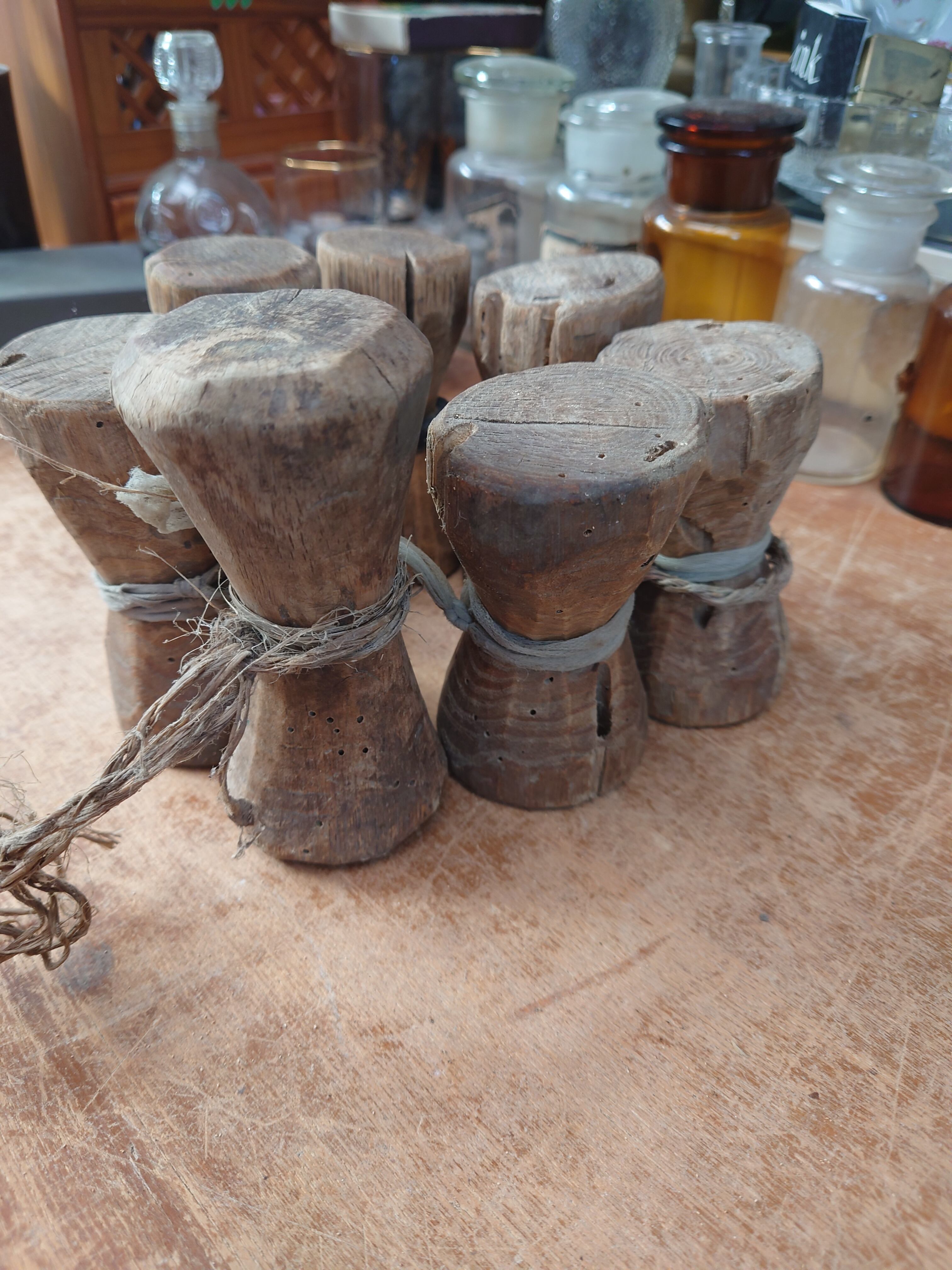 レトロな木製古民具 昔の機織り、糸繰りのおもり玉7点