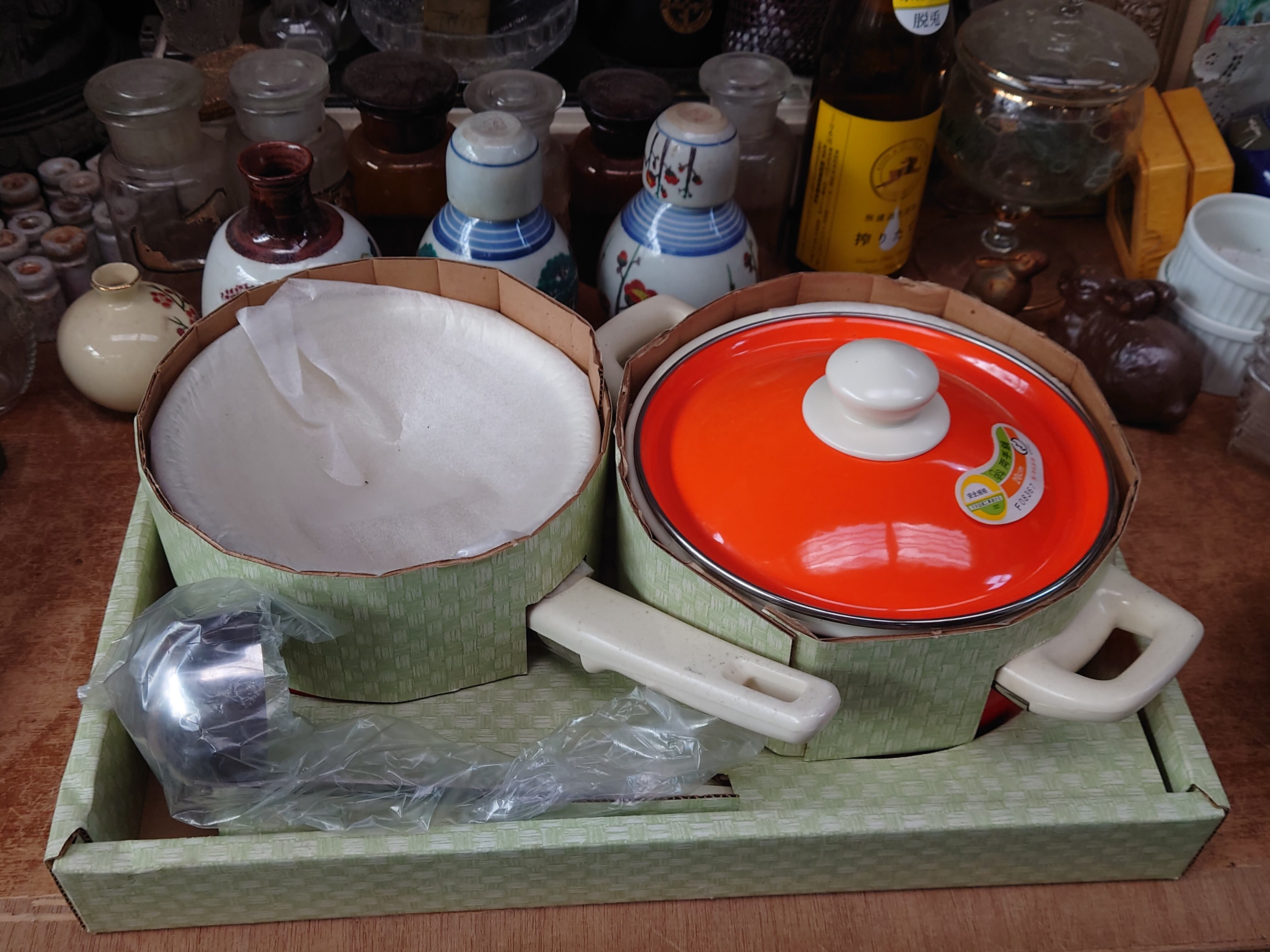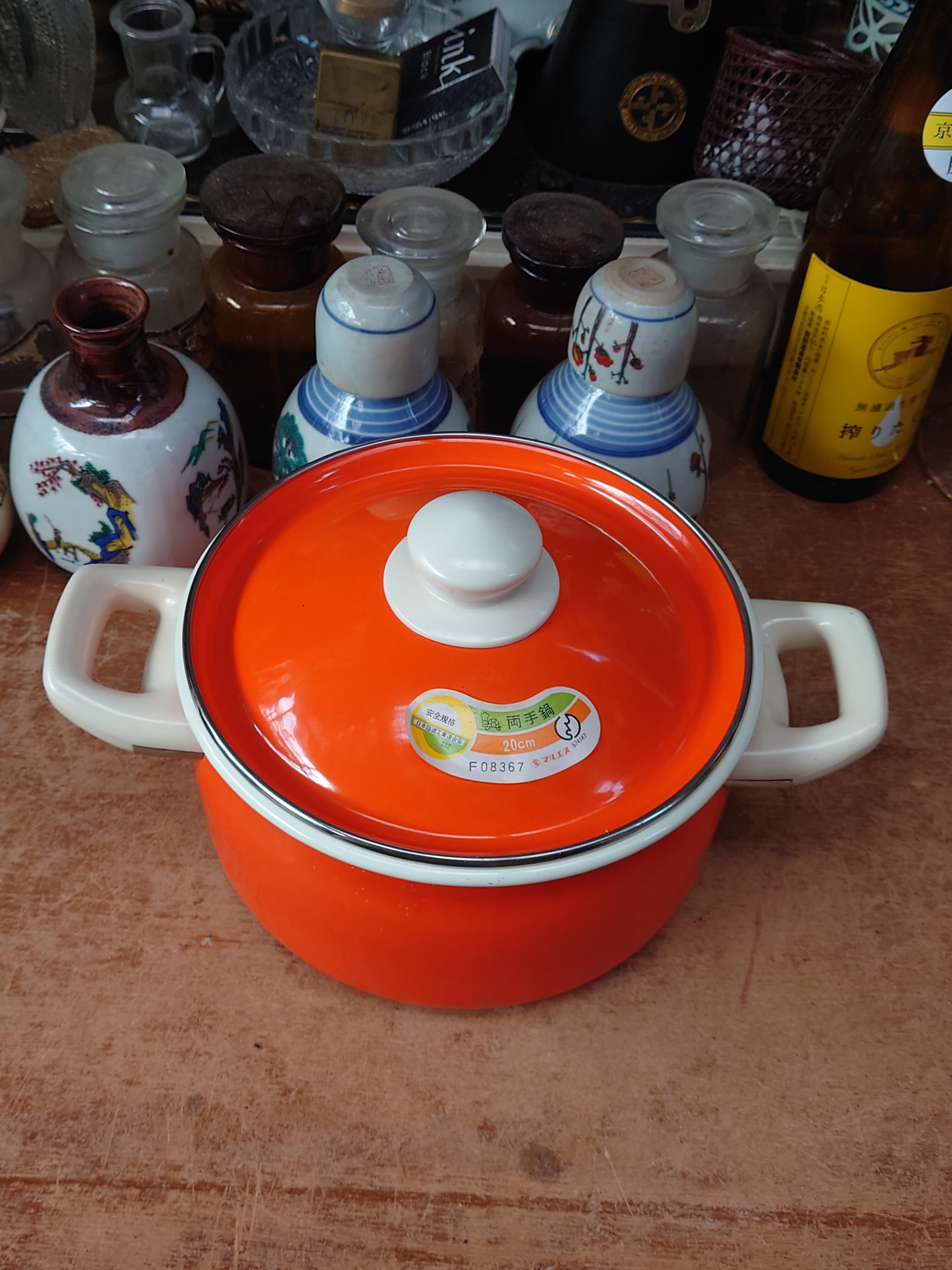 【送料込み】【昭和レトロ】未使用 レトロポップ マルエスホーロー 辻野製作所 片手鍋、両手鍋セット