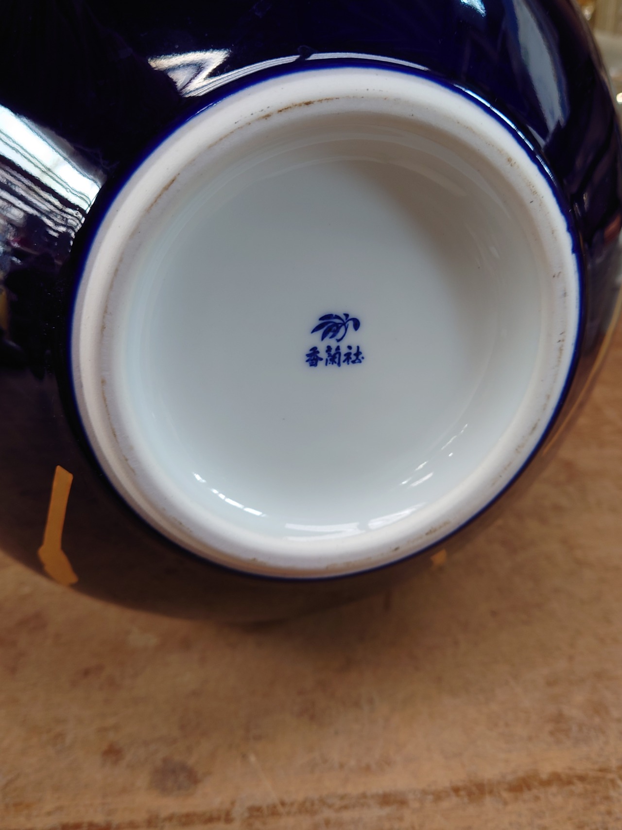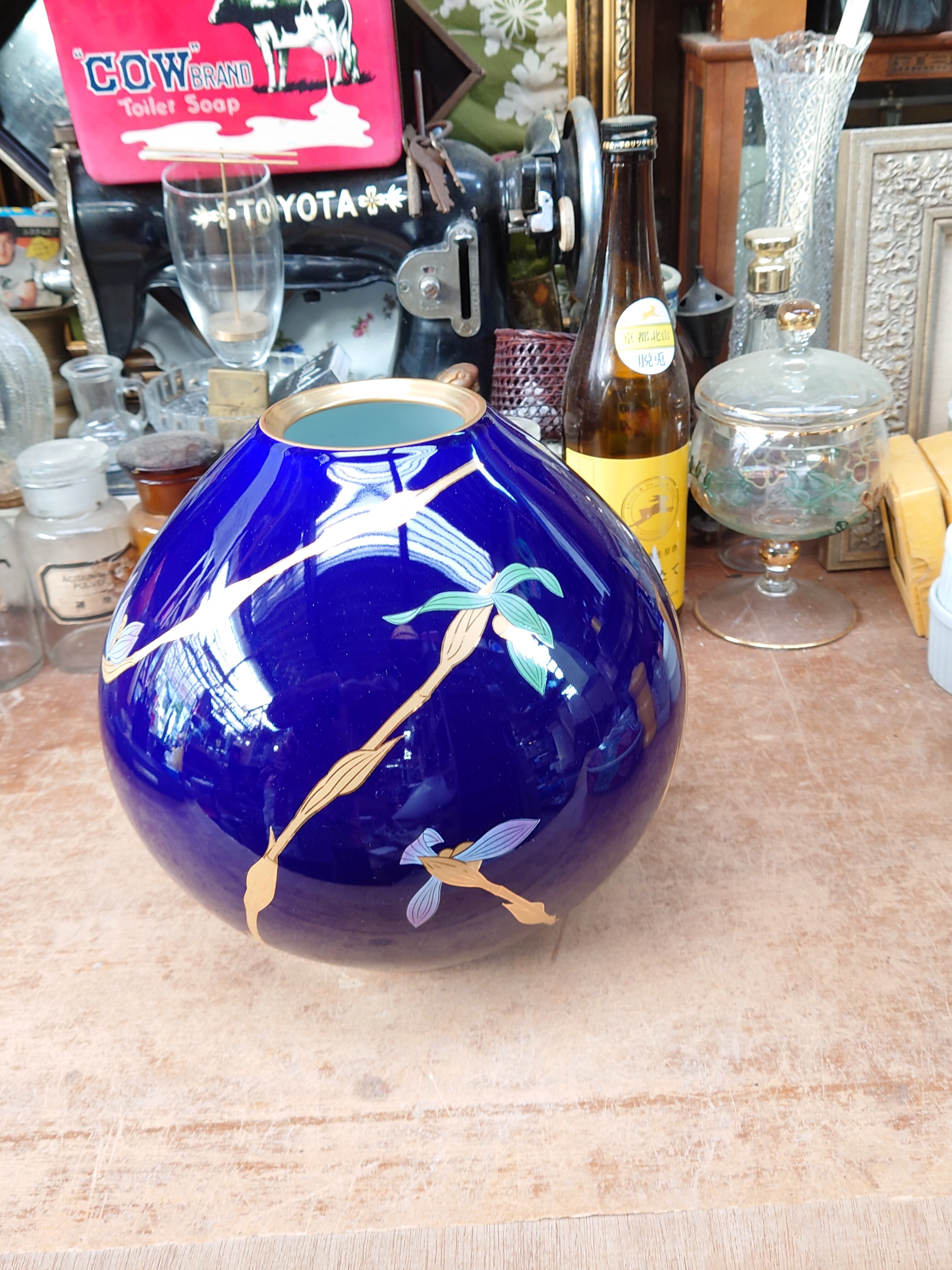 【送料込み】香蘭社 壺 アヤメ 瑠璃 藍色 箱付き