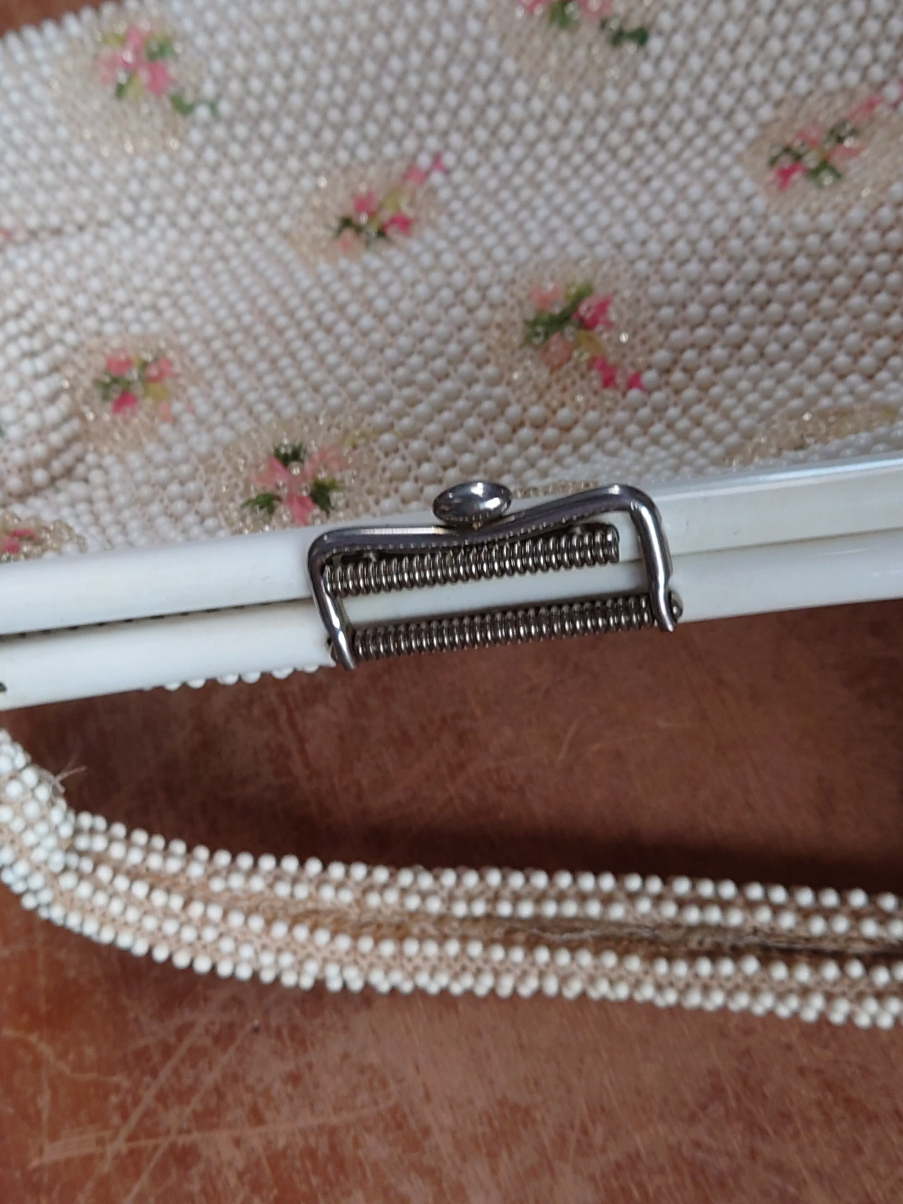 【送料込み】【昭和レトロ】春色のビーズバッグ がま口 中古 ビーズバッグ