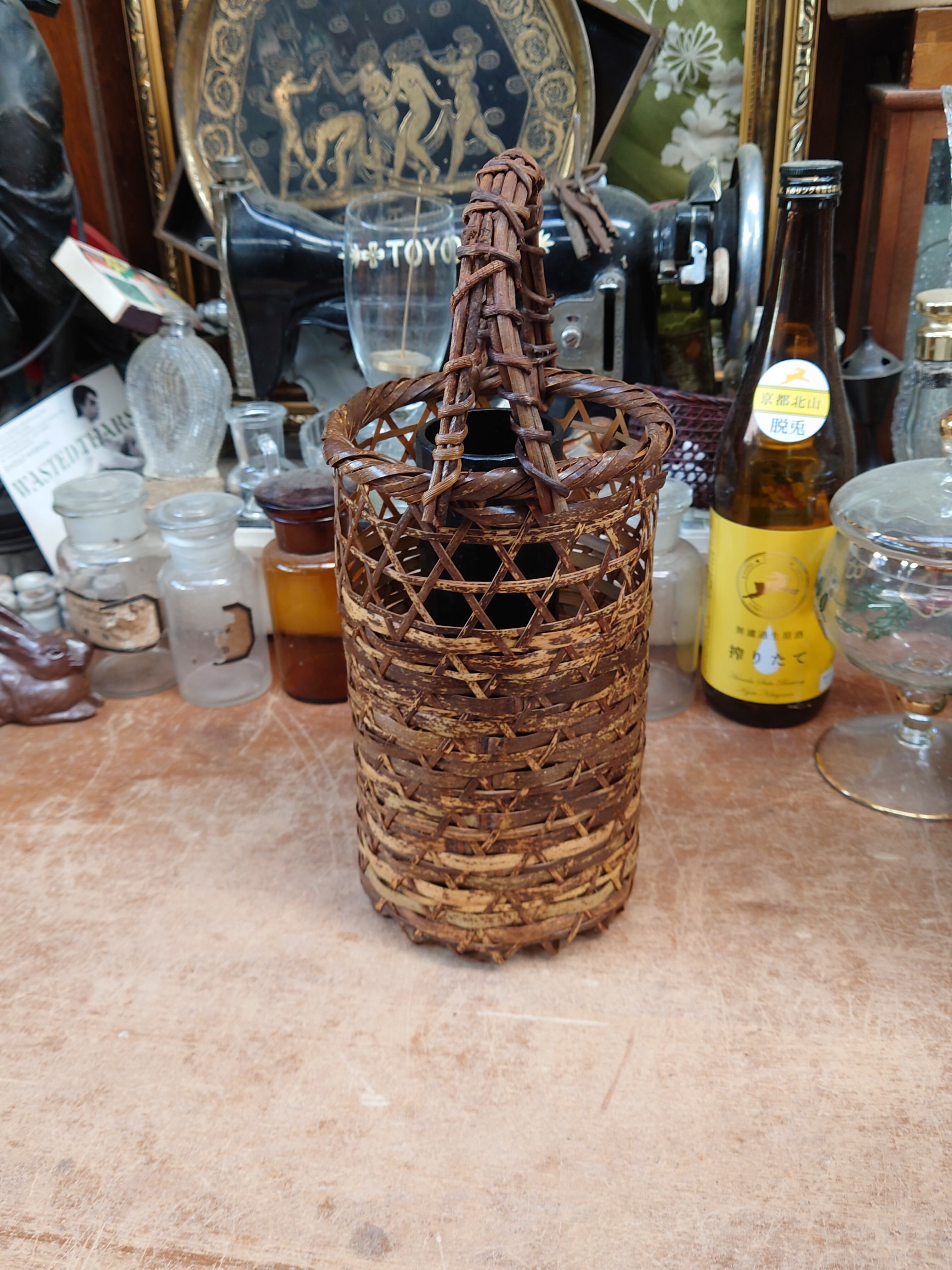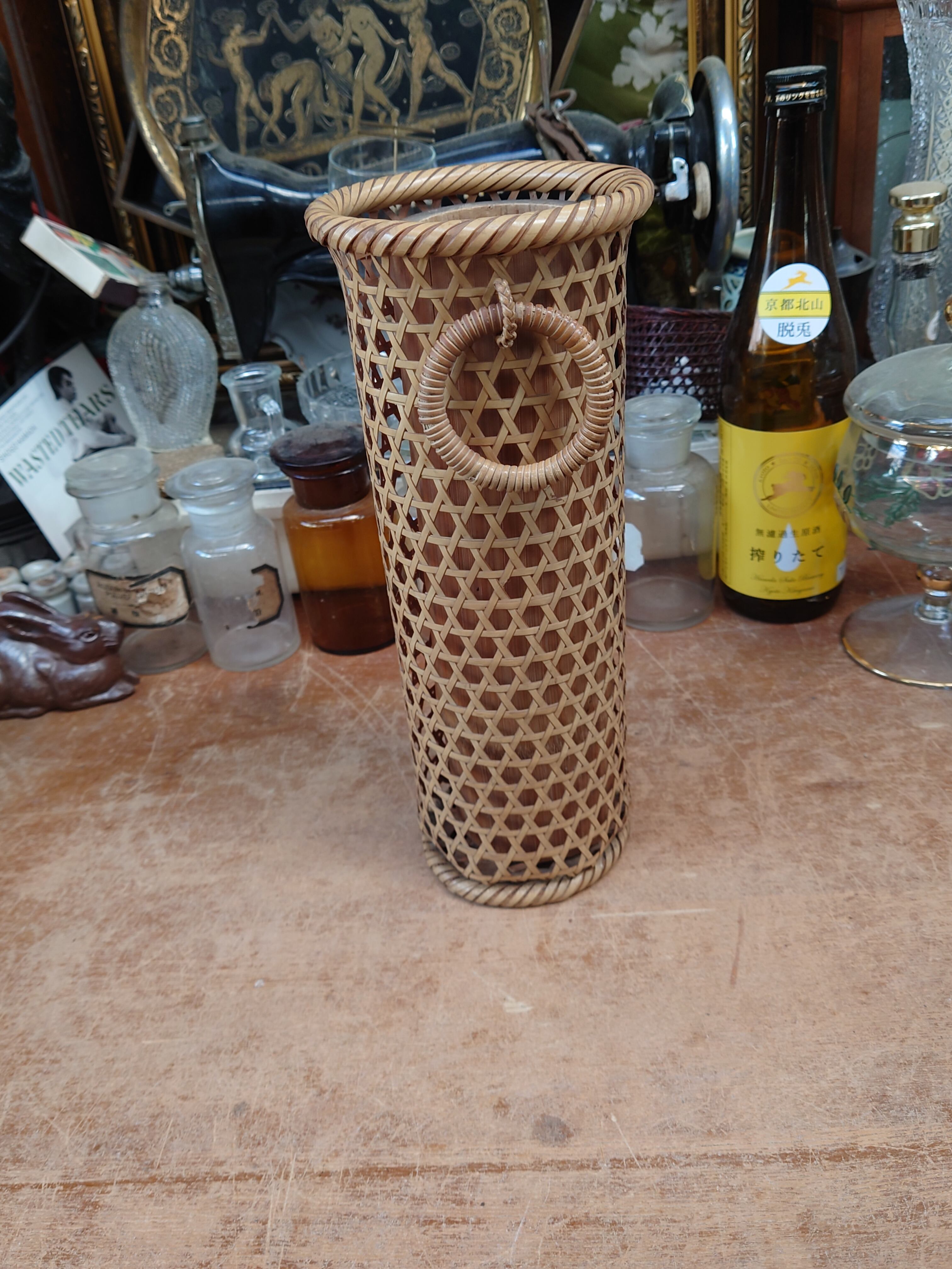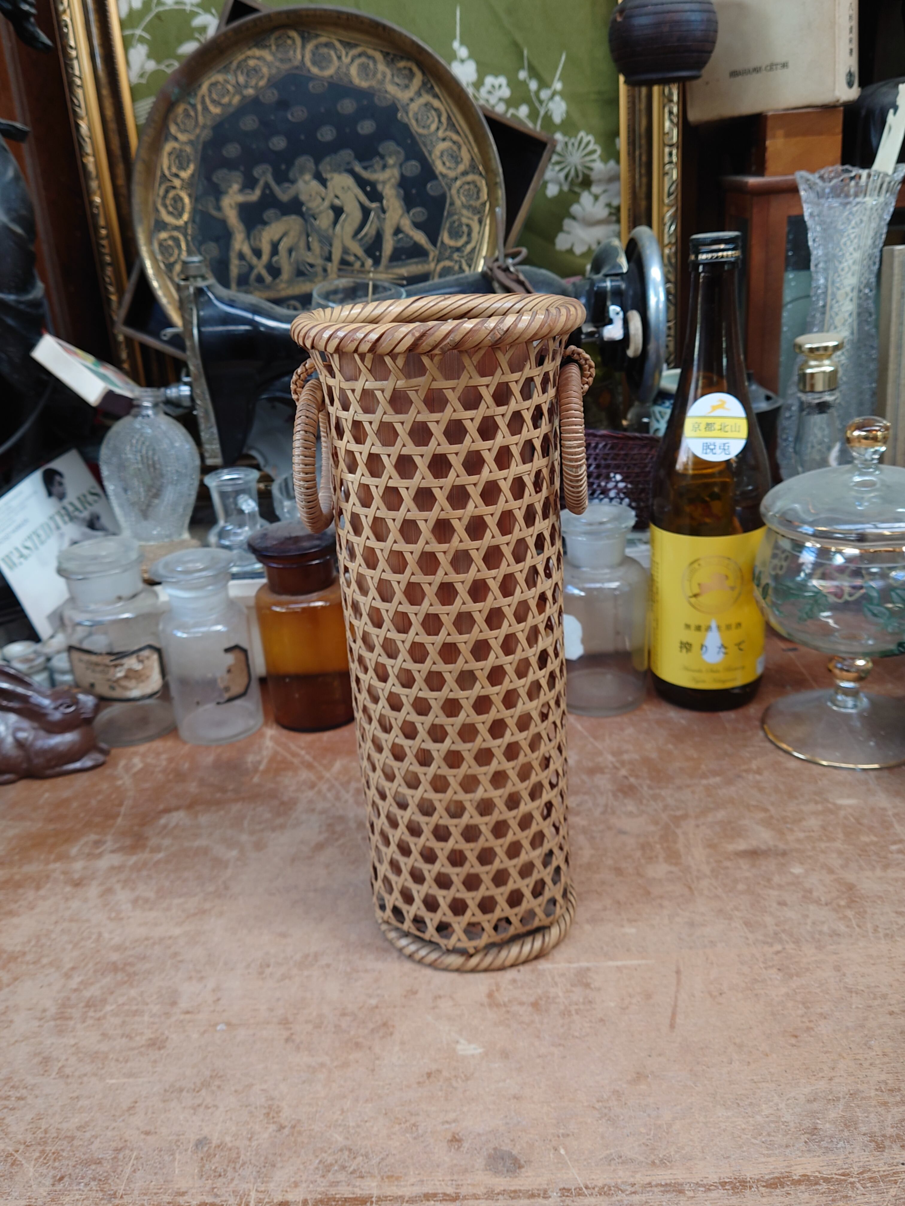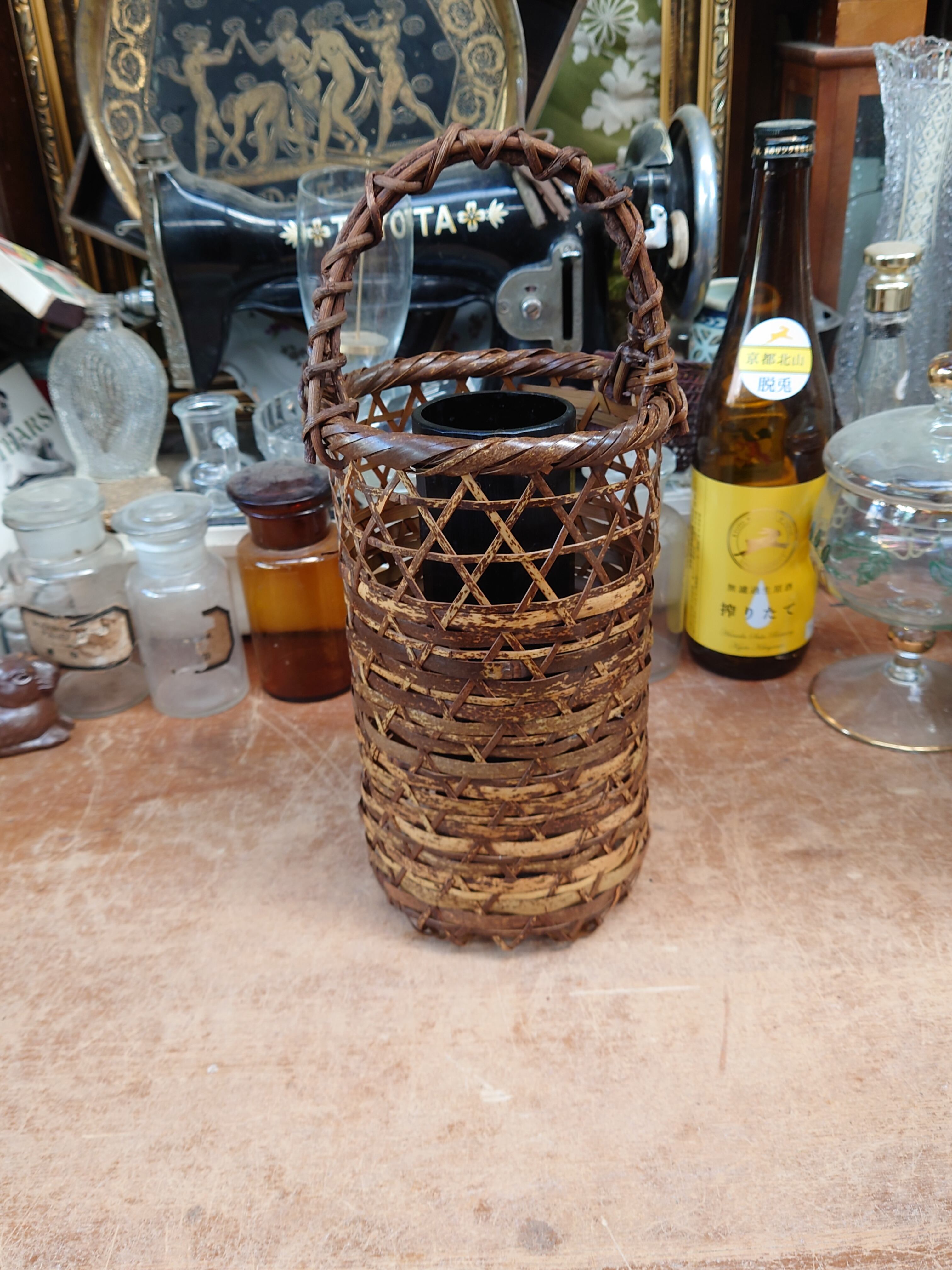 中古の竹花籠 竹のおとし付