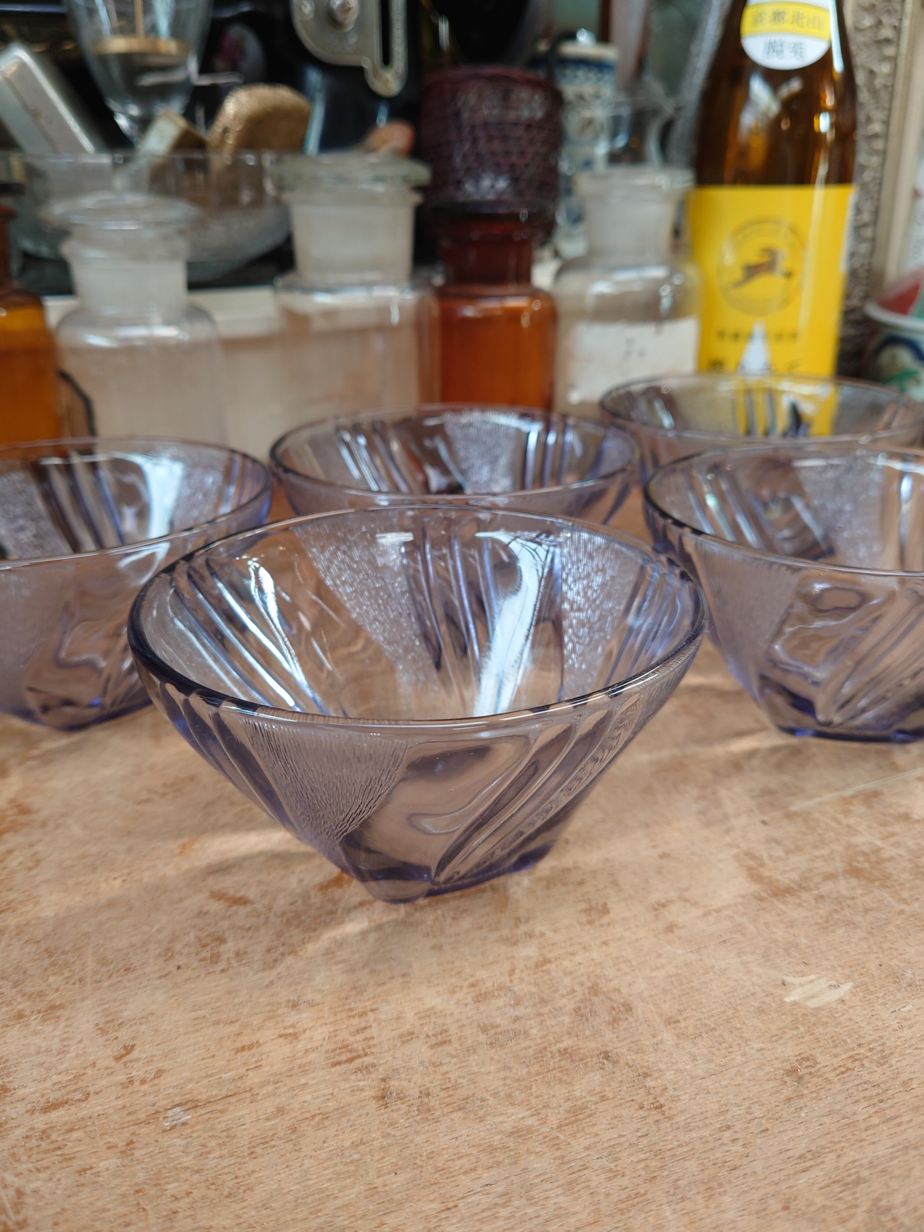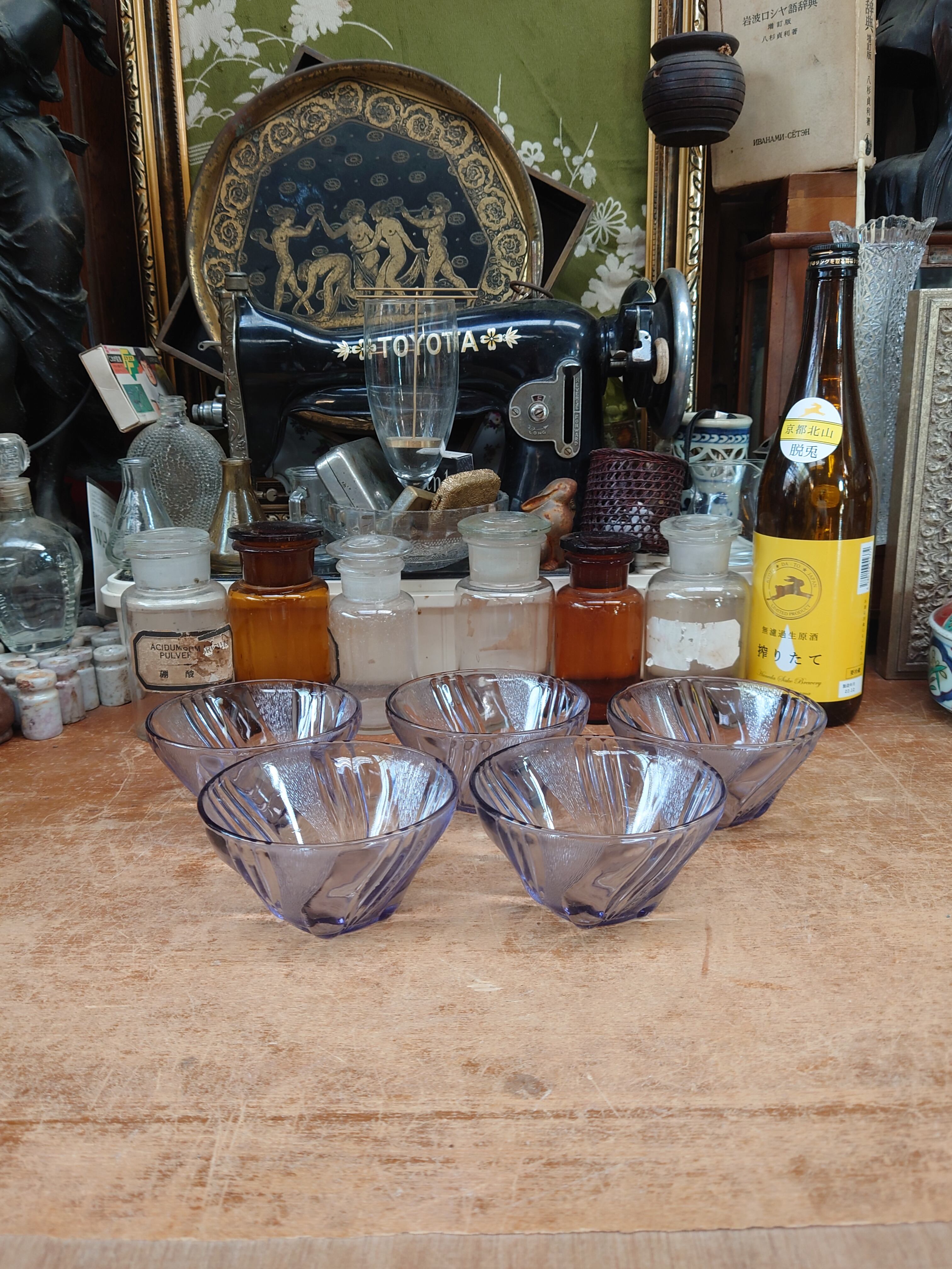 【送料込み】【グラス祭り】プレスガラス鉢 紫色 お揃い 5個セット
