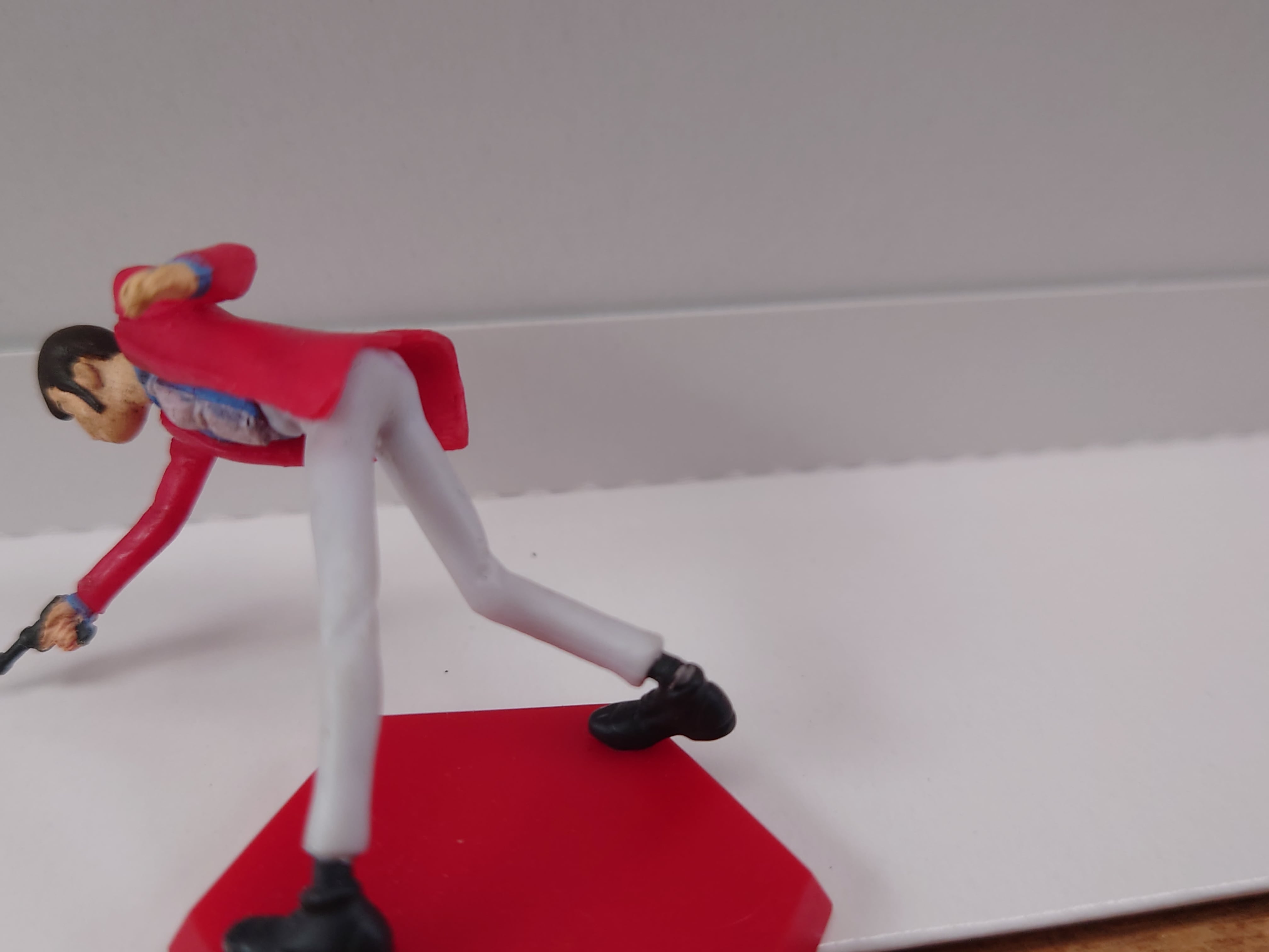 ルパン三世の赤いジャケットを着て銃を構えているフィギュアの右足が折れてます