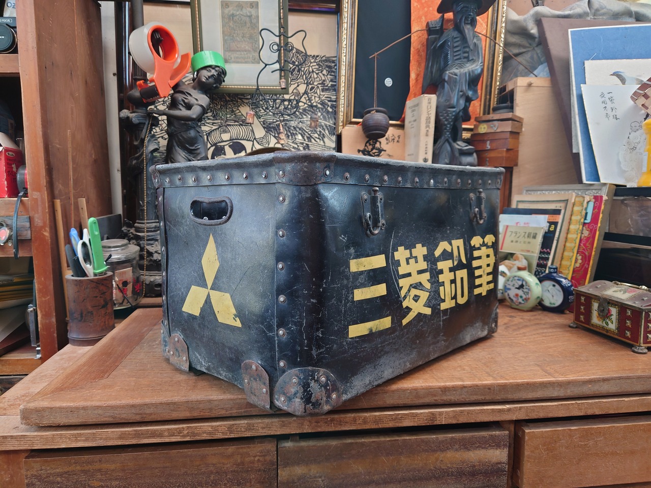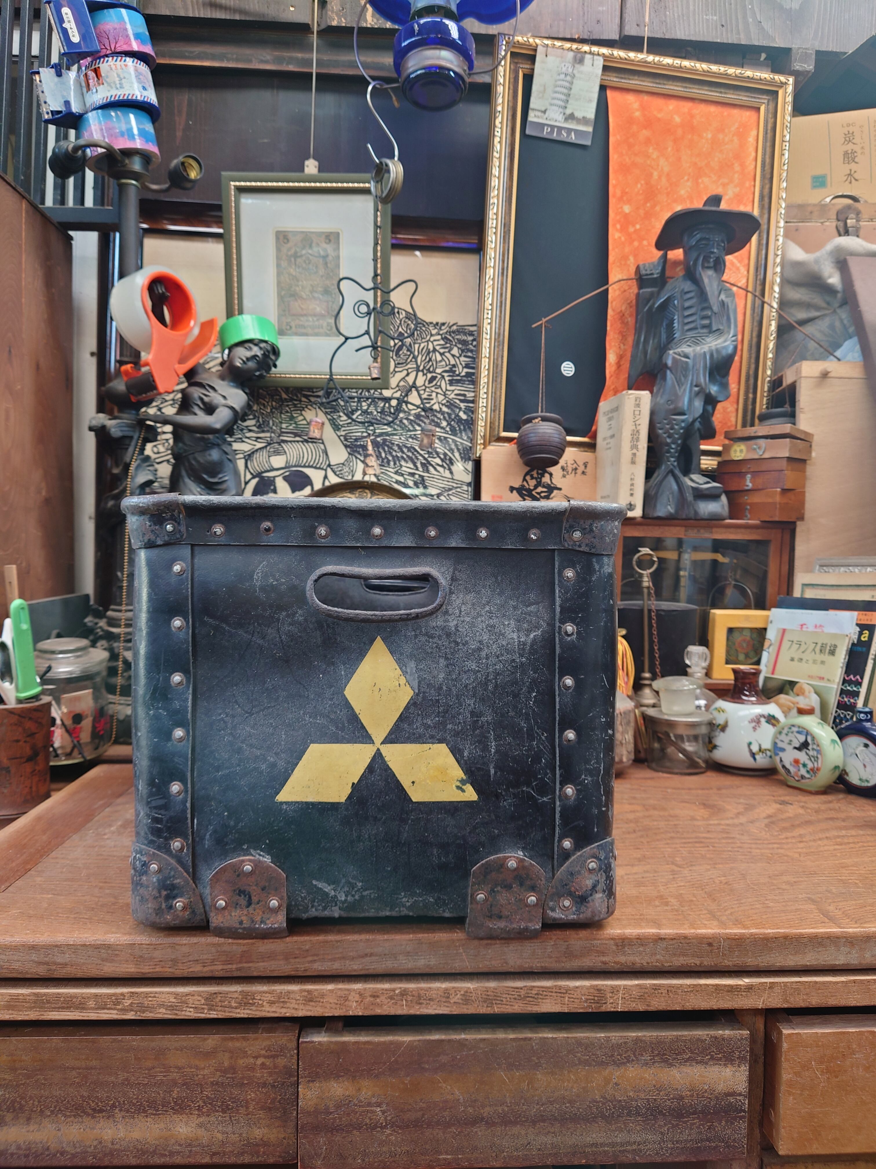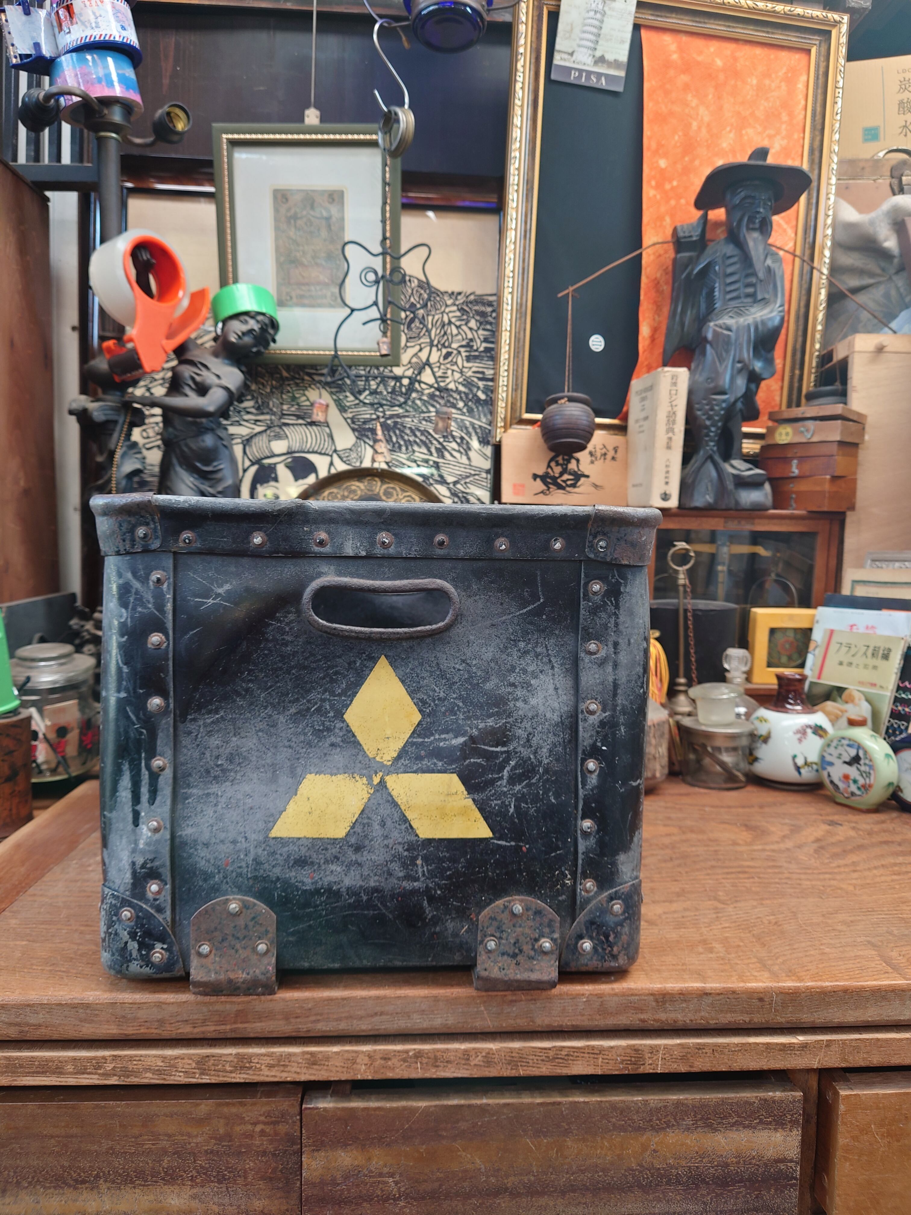 【昭和レトロ】三菱鉛筆箱 黒 ボテ箱 収納ボックス コンテナボックス 当時物
