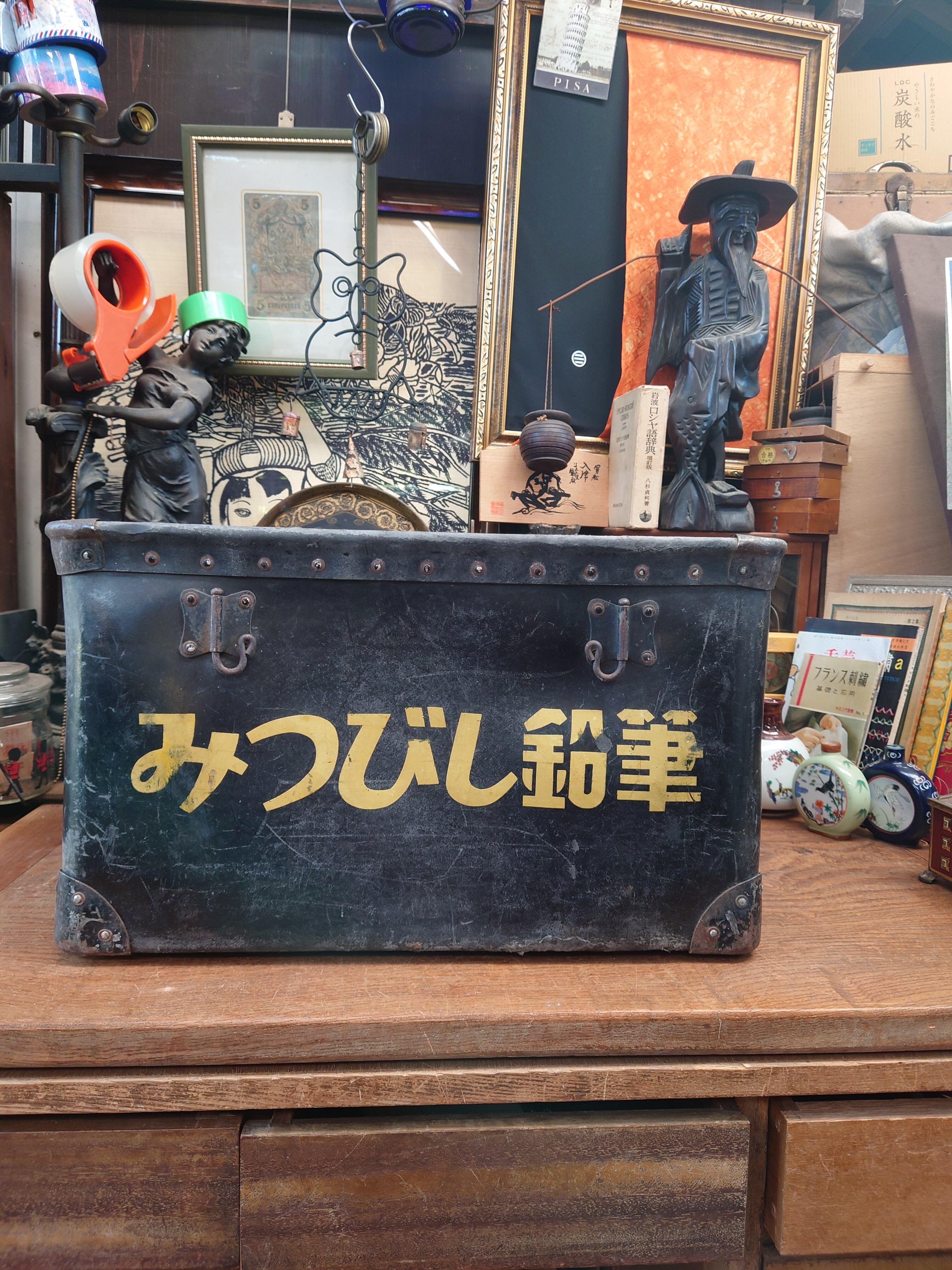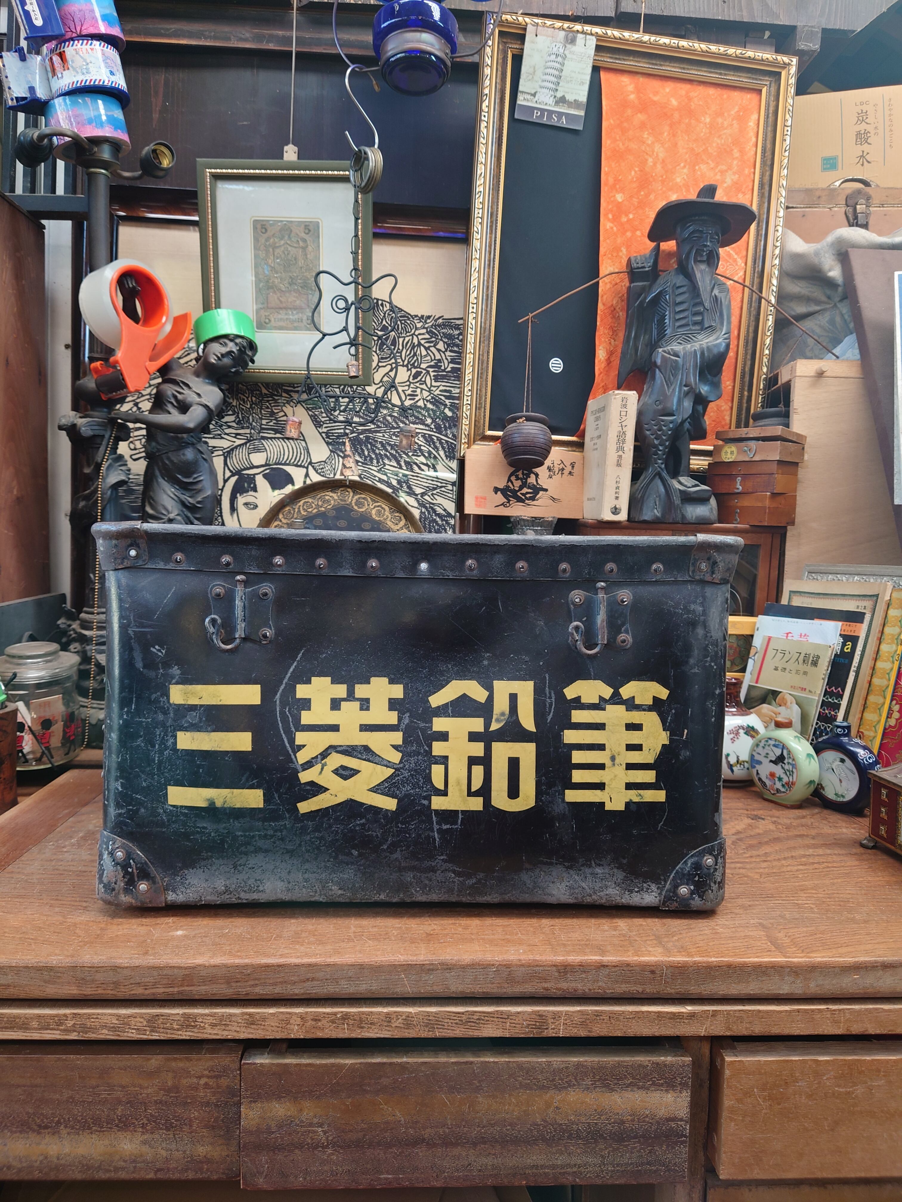 古い小学校下の文房具など扱っていた雑貨屋にあった三菱鉛筆と書かれた黒いボテ箱