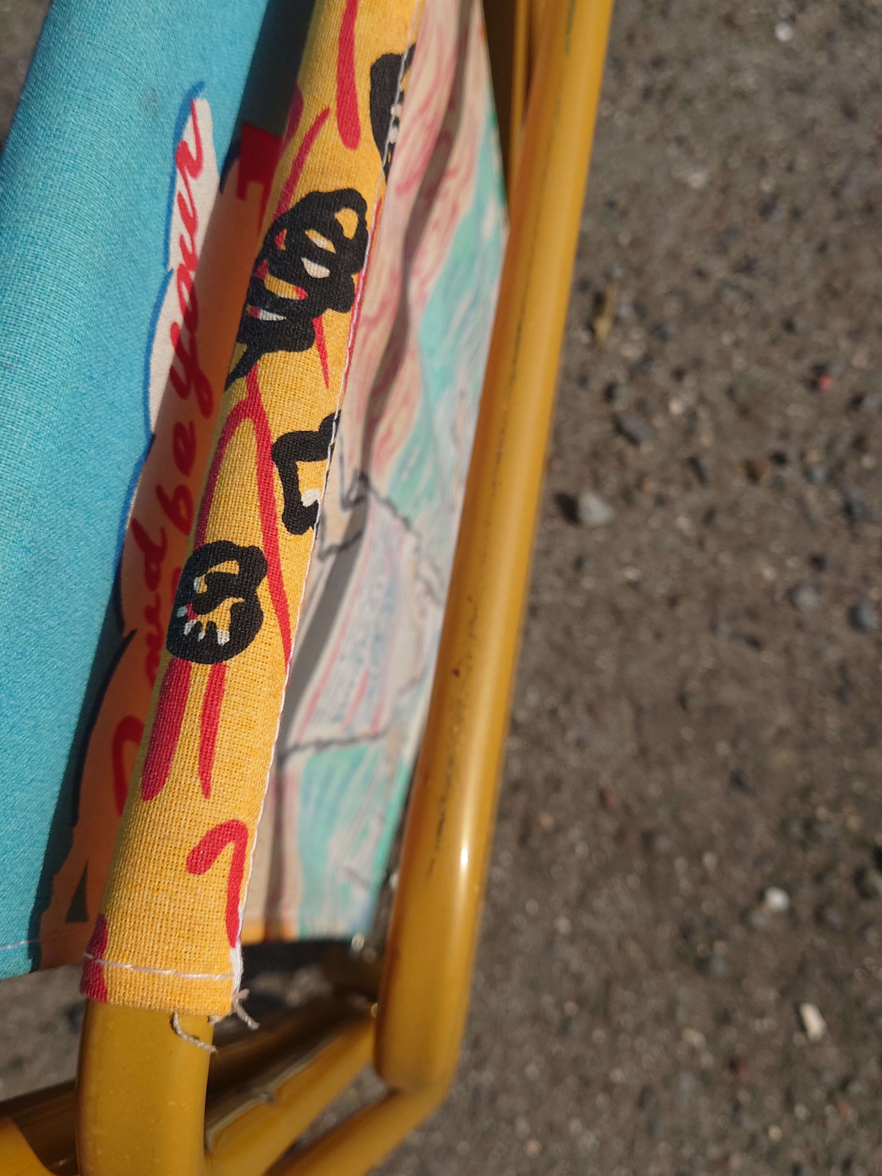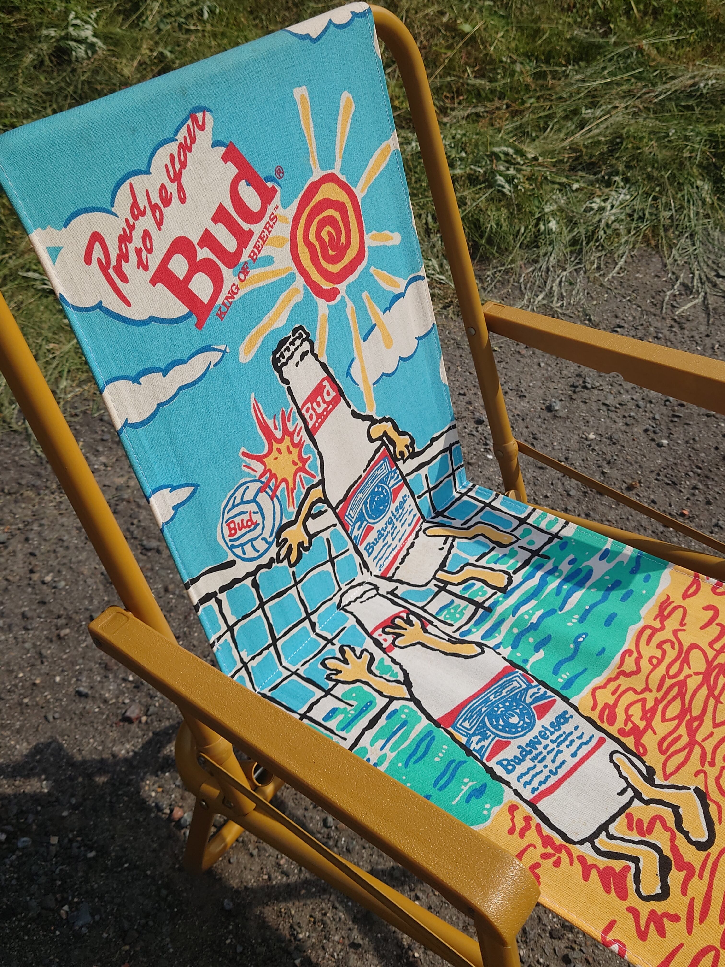 バドワイザーのボトルがビーチバレーをしているイラストの折りたたみ椅子