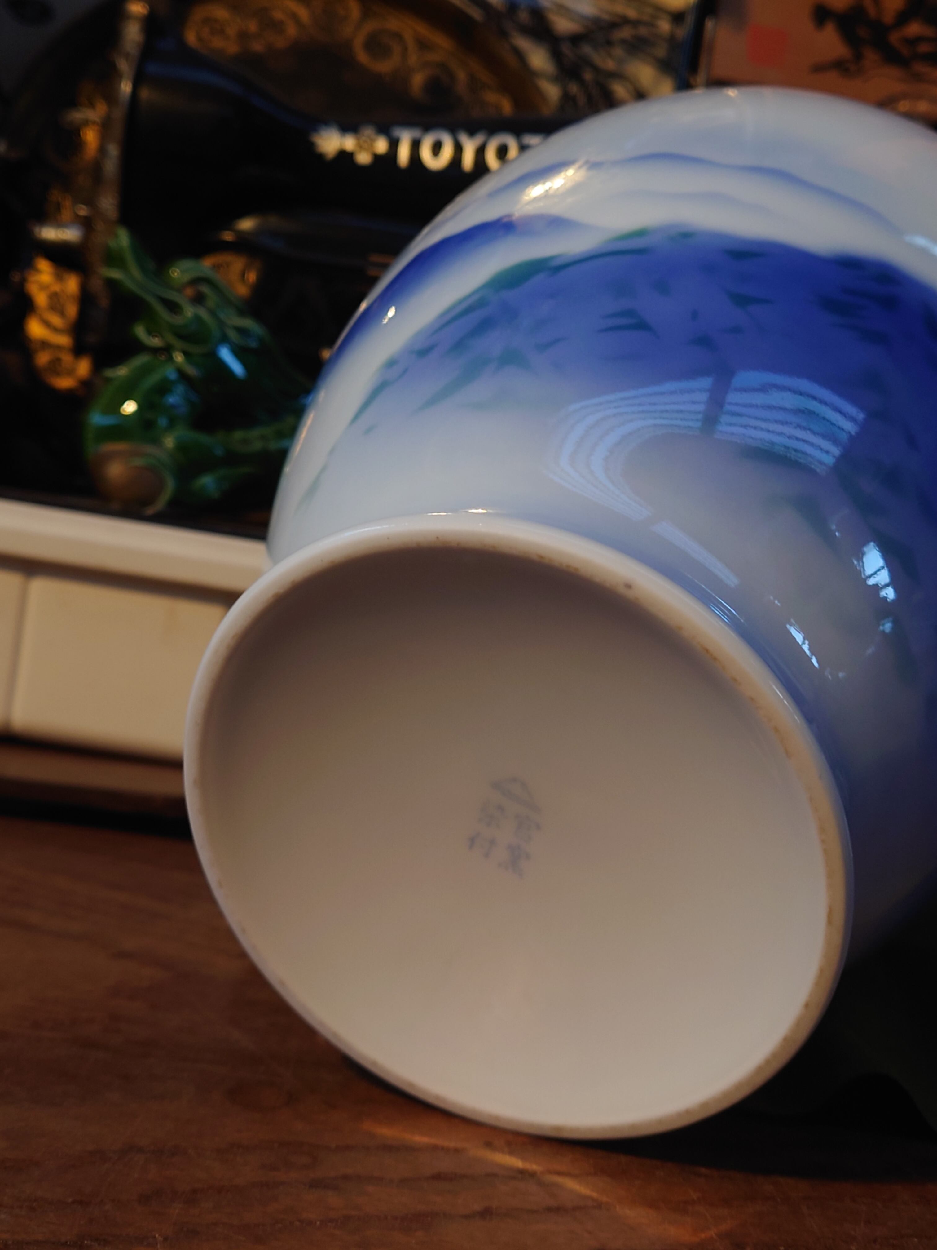【送料込み】【縁起物】深川製磁 花瓶 赤富士富士山共箱 花器 宮内庁御用達 有田焼