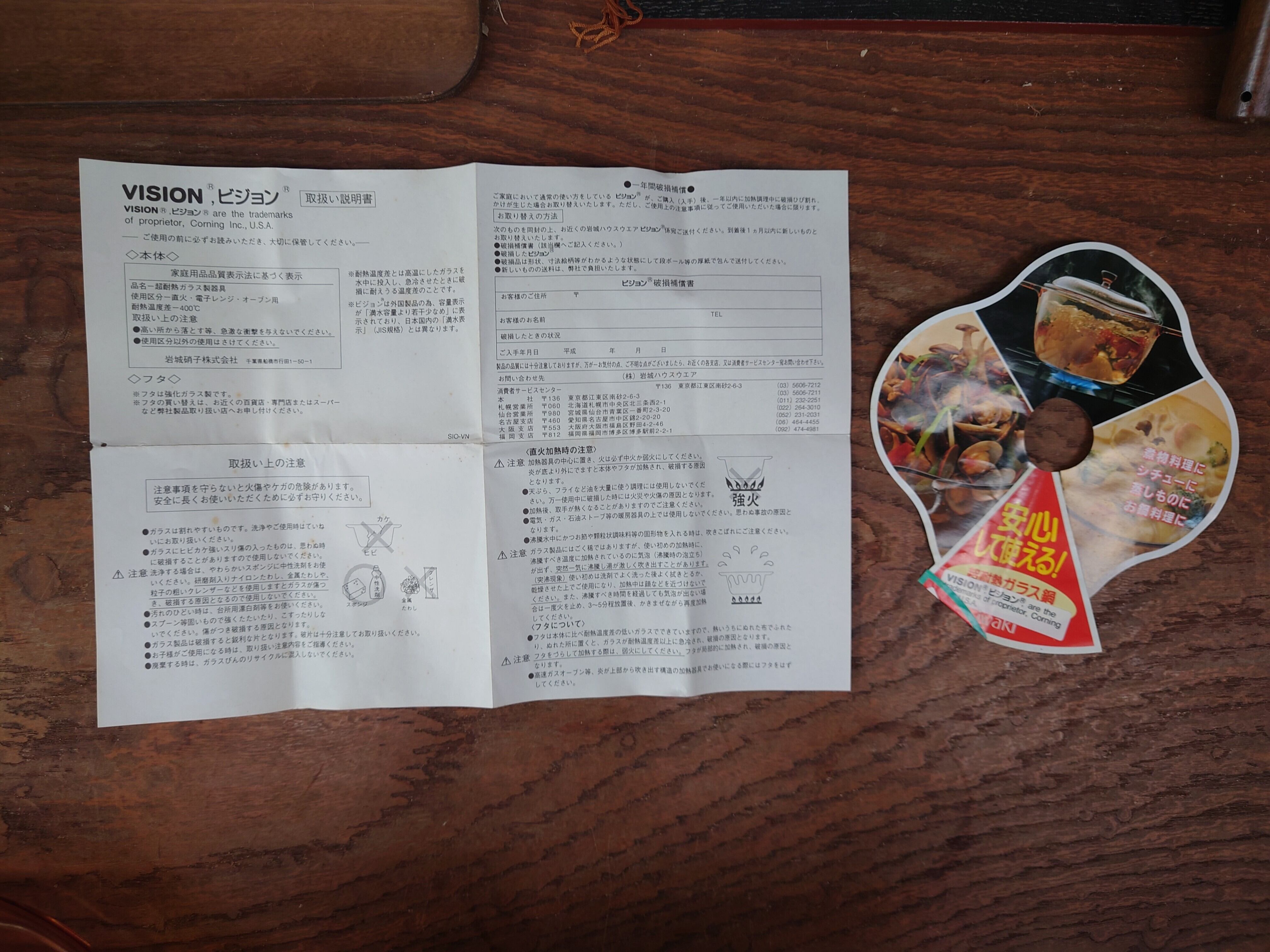 VISIONS ビジョン 両手鍋1.5 超耐熱ガラス製器具 岩城硝子 箱付き