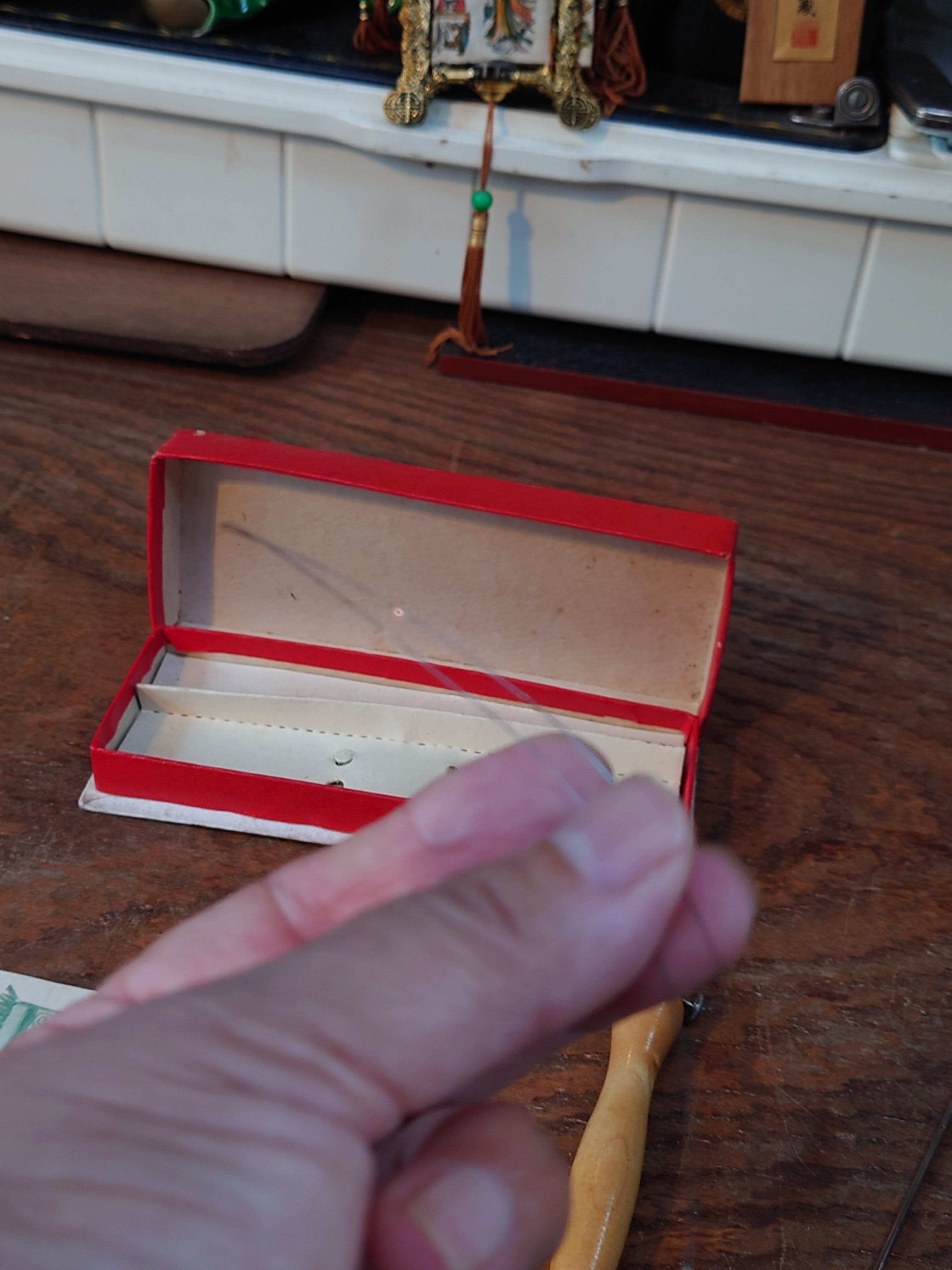 ケースに太針・細針・糸通し用針金・取説がセット