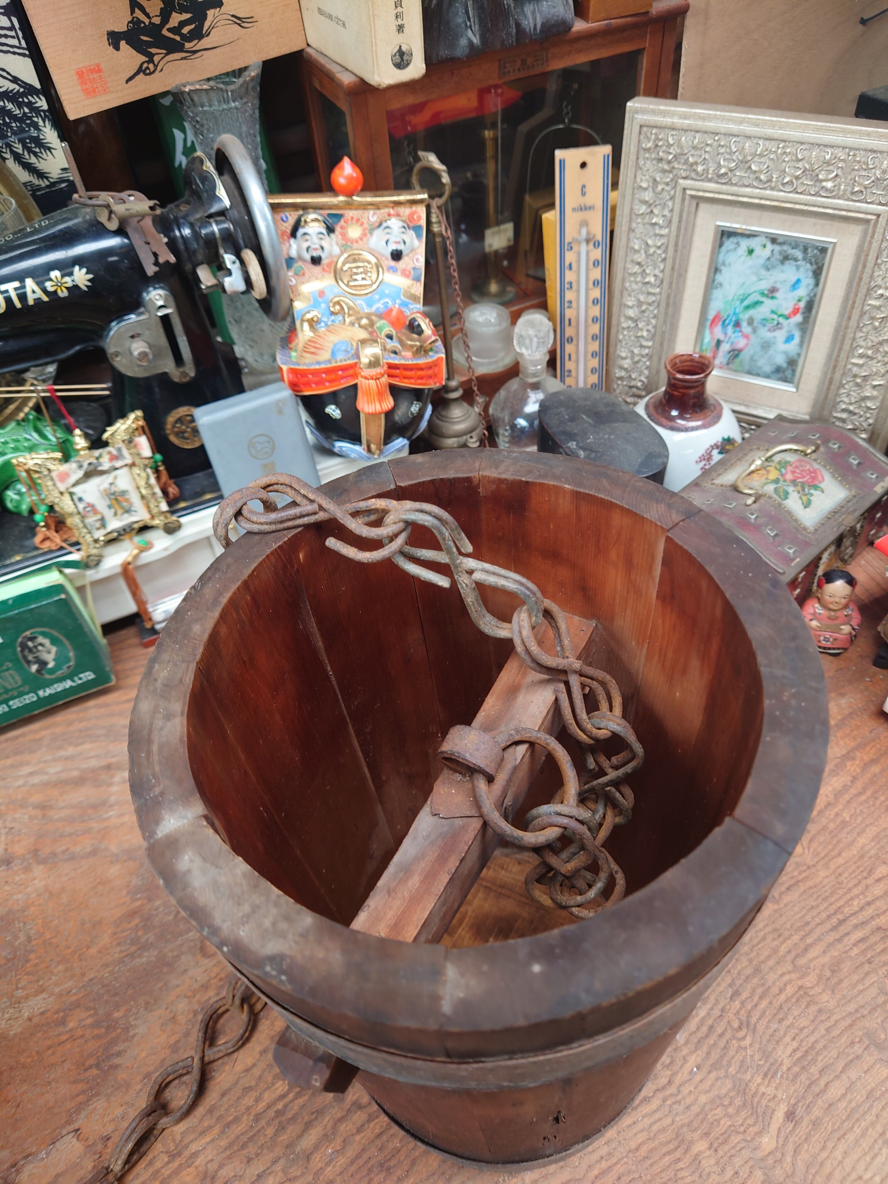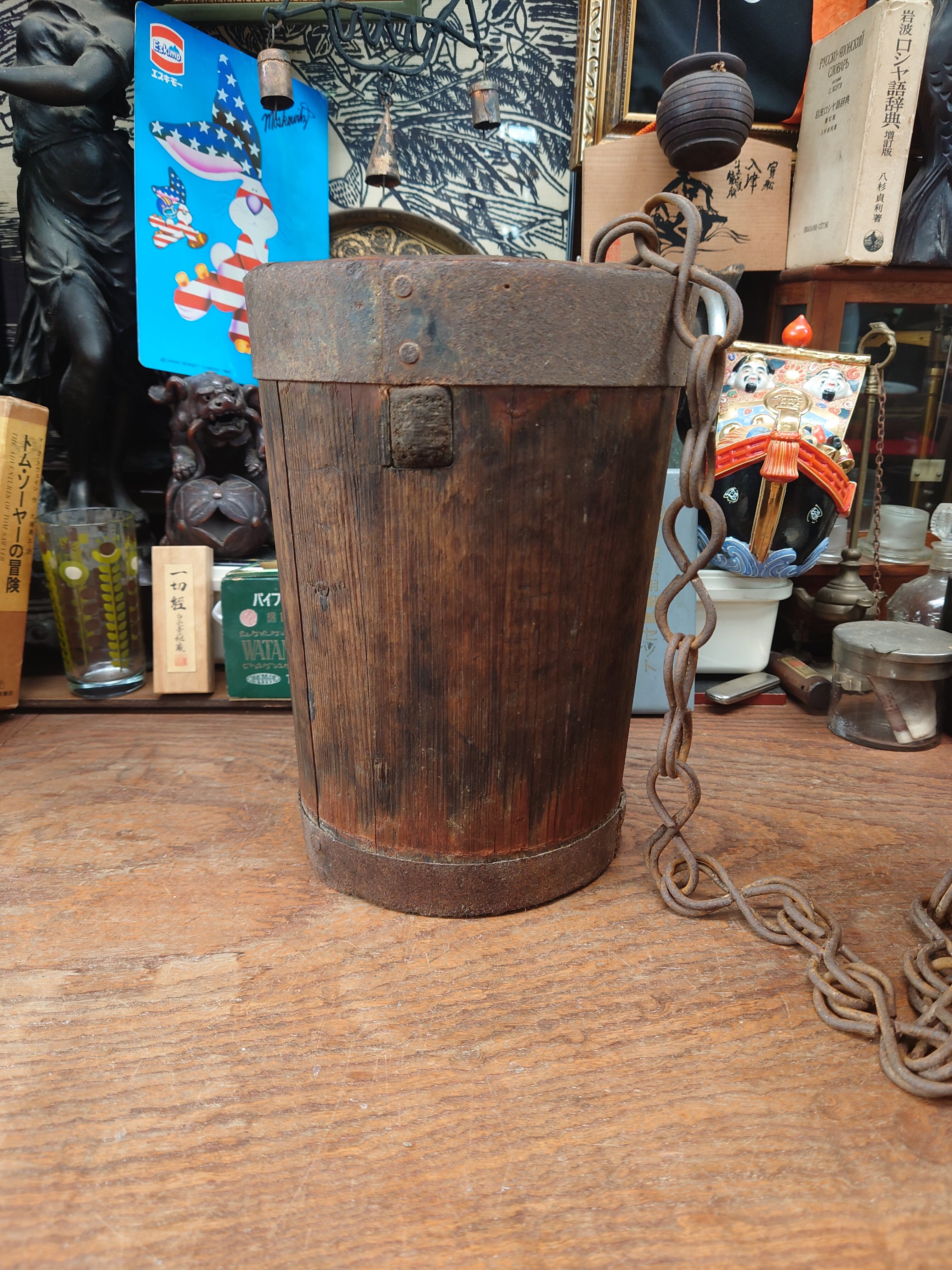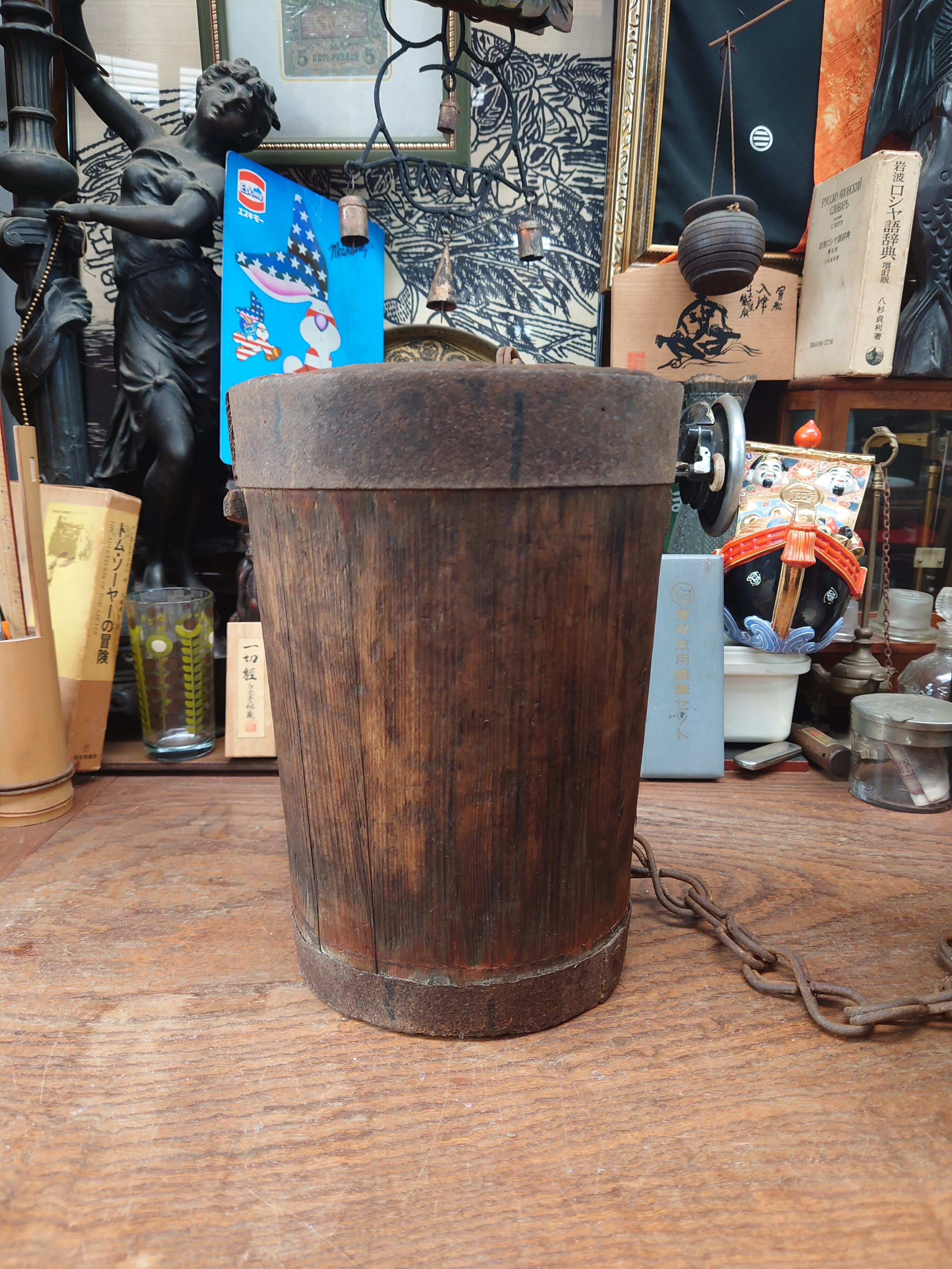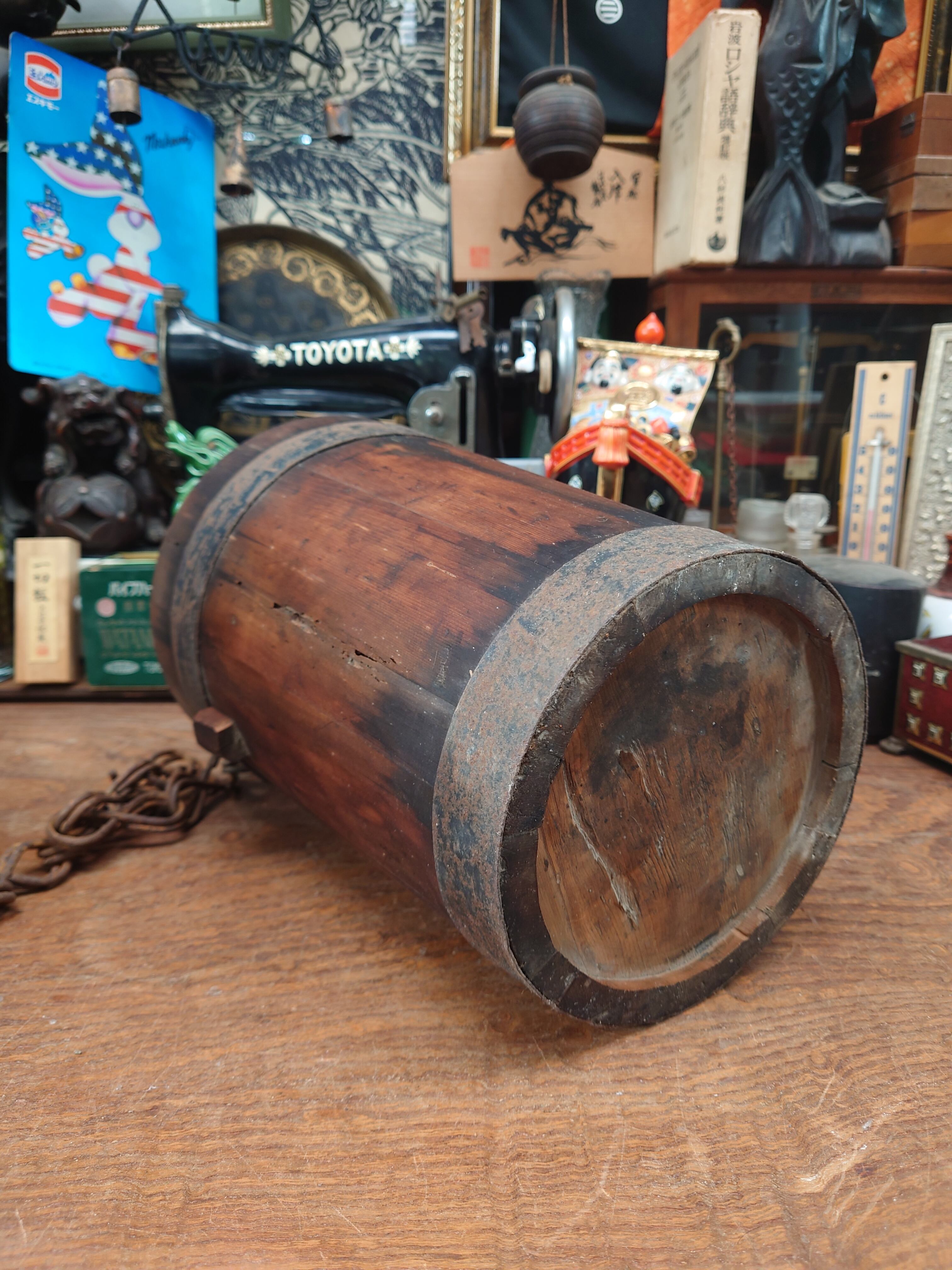 【古民具】つるべ井戸 釣瓶 鉄タガ巻 桶 丸 アンティーク