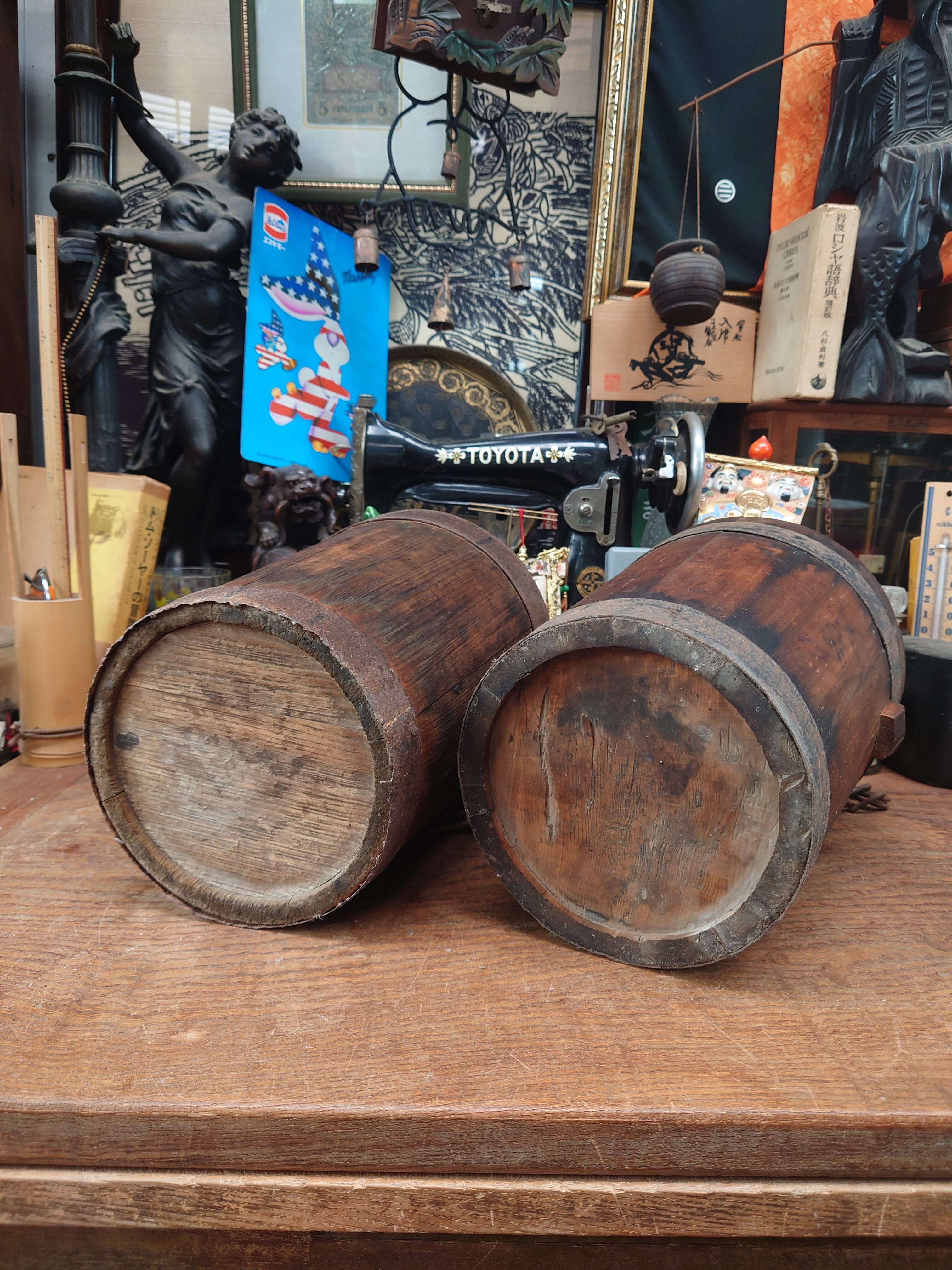 丸型桶一対(2個セット)と鉄製鎖のセット