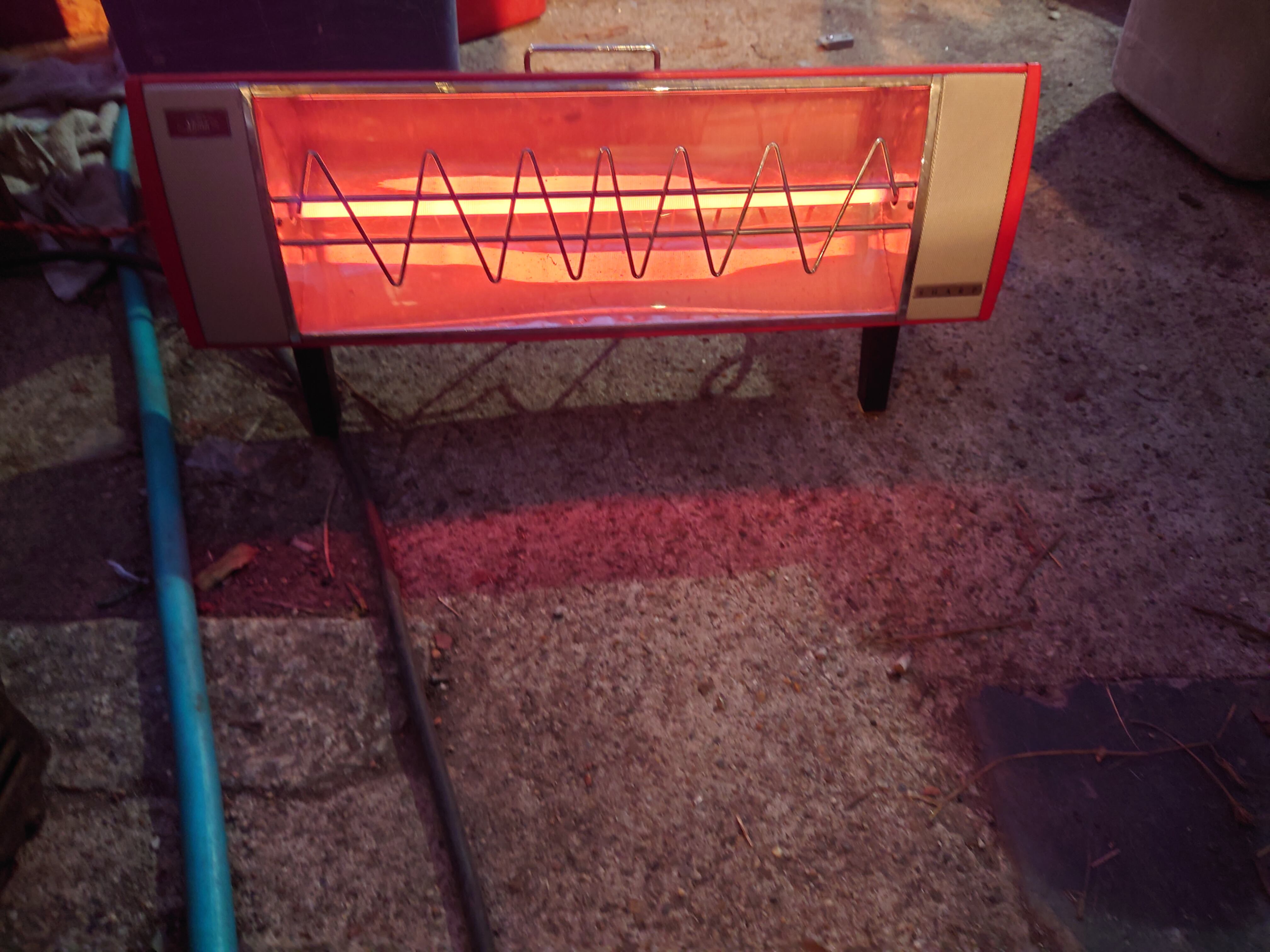 【送料込み】昭和レトロ ポップ 当時物 中古 早川電機 シャープ 電気ストーブ HS-525型 動作確認済み 100V 600W レトロ家電 箱付き